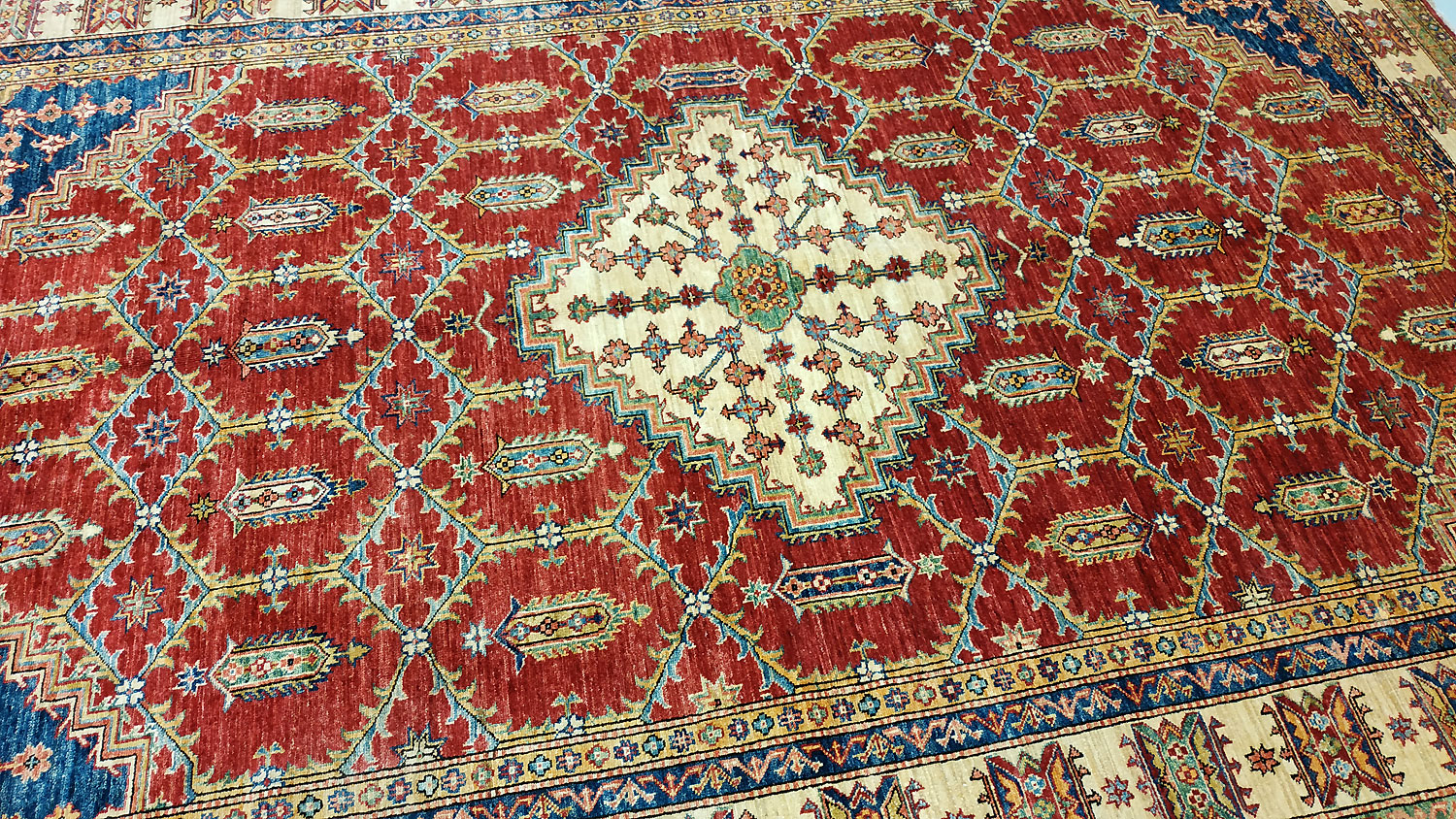 Dimensions : 305 x 216 cm -laine- Pays Afghanistan - Épaisseur : 8 mm - Densité de nouage : 300.000 Nœuds au m² - Surface : 6.59 m² - Poids : 19.76 Kgs - Age : contemporain - Confection : Noué main - Forme : Tapis de salon - Type : Tapis Oriental