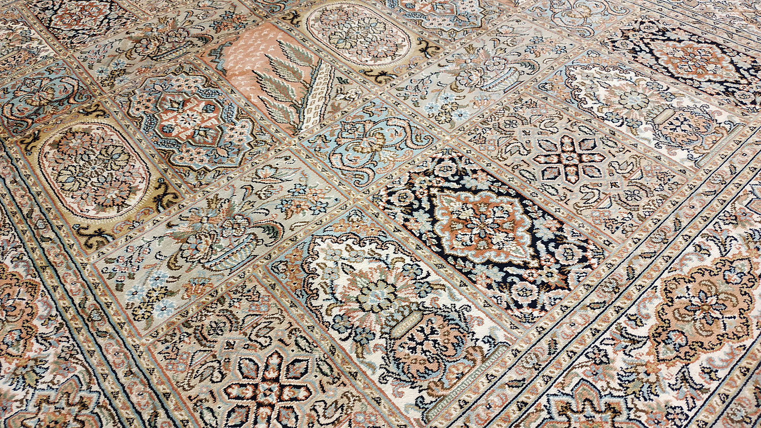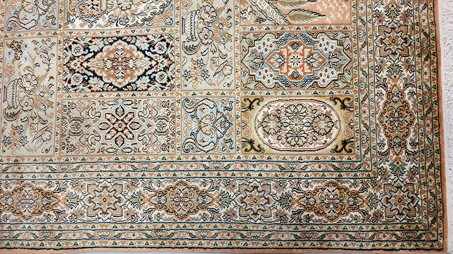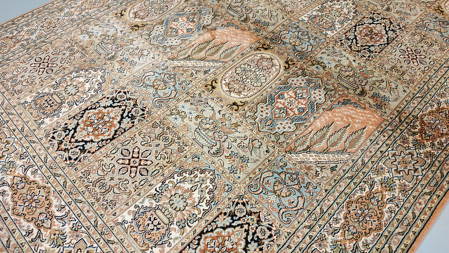 Dimensions : 197 x 123 cm -soie- Pays Inde - Épaisseur : 6 mm - Densité de nouage : 500.000 Nœuds au m² - Surface : 2.42 m² - Poids : 4.85 Kgs - Age : contemporain - Confection : Noué main - Forme : Tapis de chambre - Type : Tapis Oriental