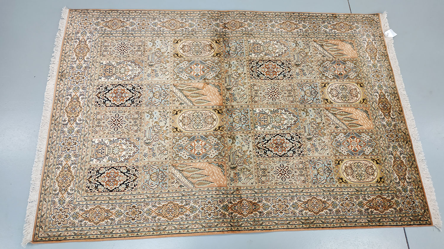 Dimensions : 193 x 131 cm -soie- Pays Inde - Épaisseur : 6 mm - Densité de nouage : 500.000 Nœuds au m² - Surface : 2.53 m² - Poids : 5.06 Kgs - Age : contemporain - Confection : Noué main - Forme : Tapis de chambre - Type : Tapis Oriental