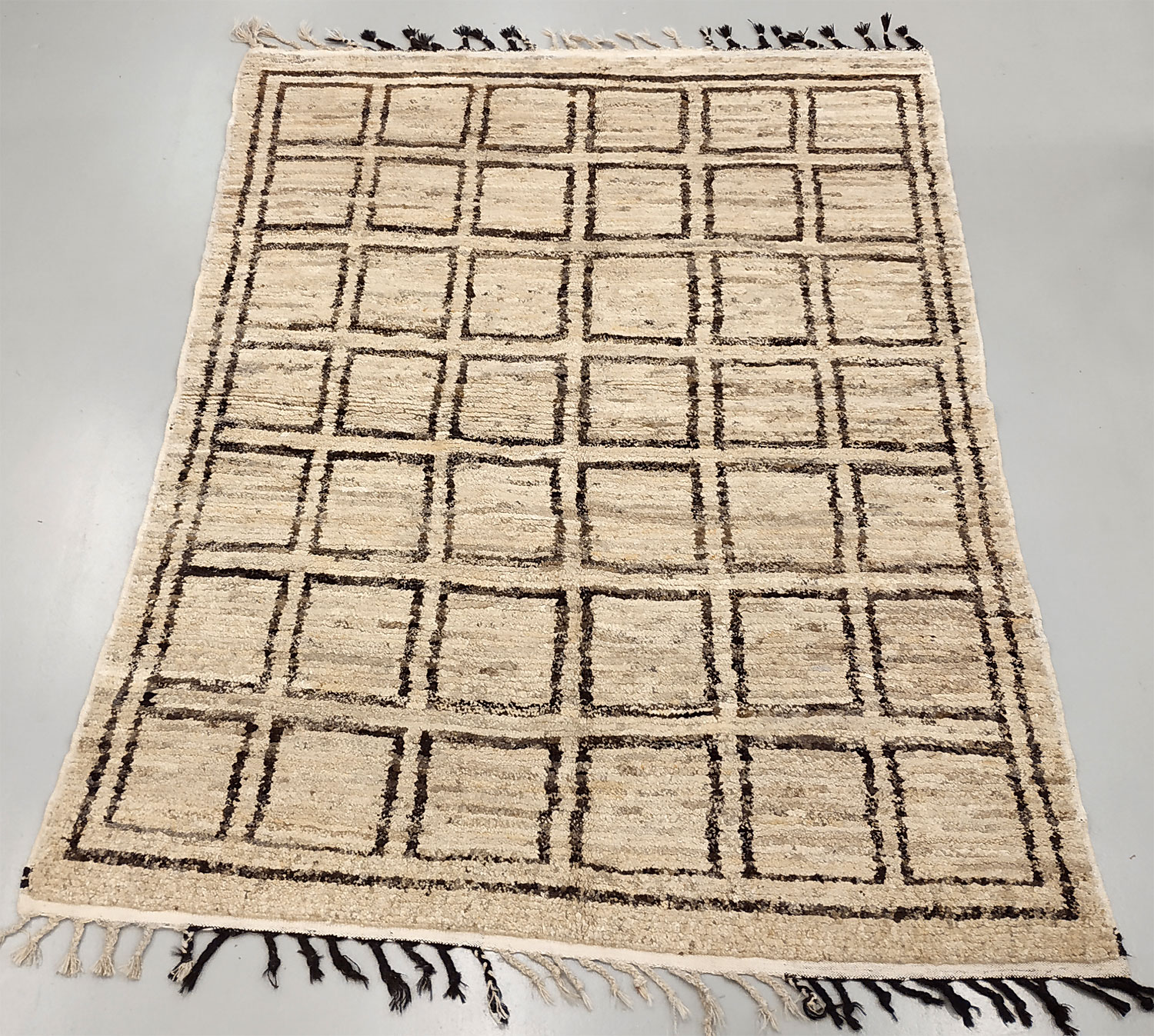 Dimensions : 237 x 170 cm -laine- Pays Maroc - Épaisseur : 20 mm - Densité de nouage : 100.000 Nœuds au m² - Surface : 4.03 m² - Poids : 12.09 Kgs - Age : contemporain - Confection : Noué main - Forme : Tapis de chambre - Type : Tapis Berbere