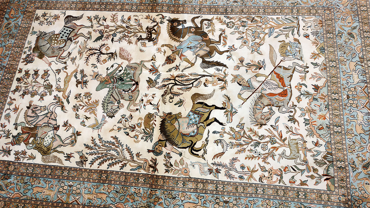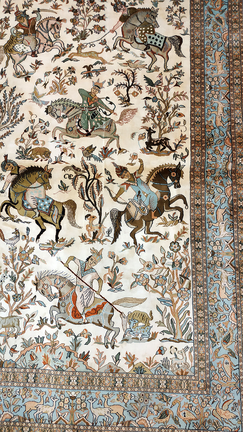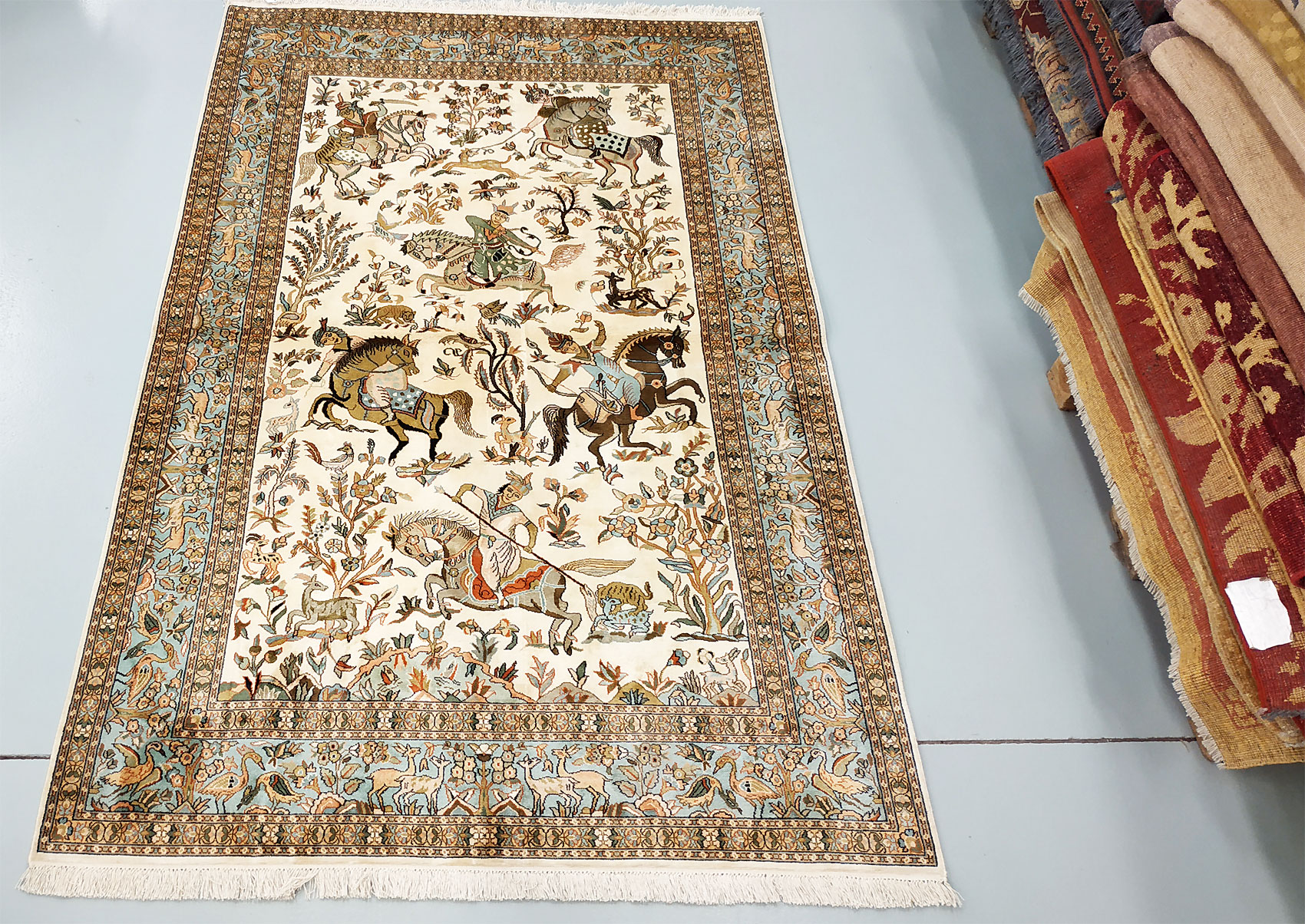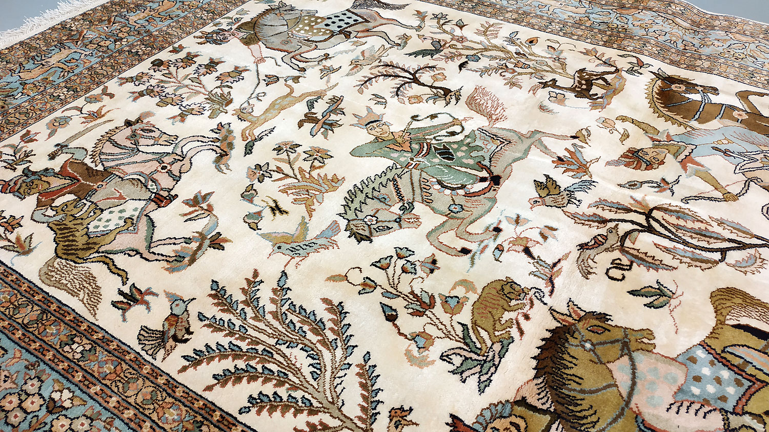 Dimensions : 217 x 157 cm -soie- Pays Inde - Épaisseur : 6 mm - Densité de nouage : 500.000 Nœuds au m² - Surface : 3.41 m² - Poids : 6.81 Kgs - Age : contemporain - Confection : Noué main - Forme : Tapis de chambre - Type : Tapis Oriental