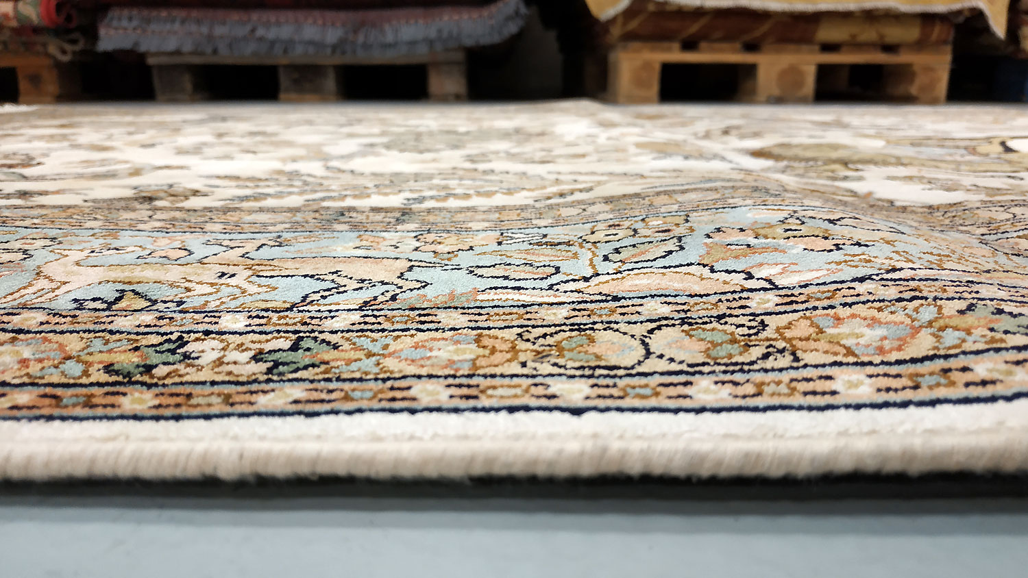 Dimensions : 217 x 152 cm -soie- Pays Inde - Épaisseur : 6 mm - Densité de nouage : 500.000 Nœuds au m² - Surface : 3.3 m² - Poids : 6.6 Kgs - Age : contemporain - Confection : Noué main - Forme : Tapis de chambre - Type : Tapis Oriental