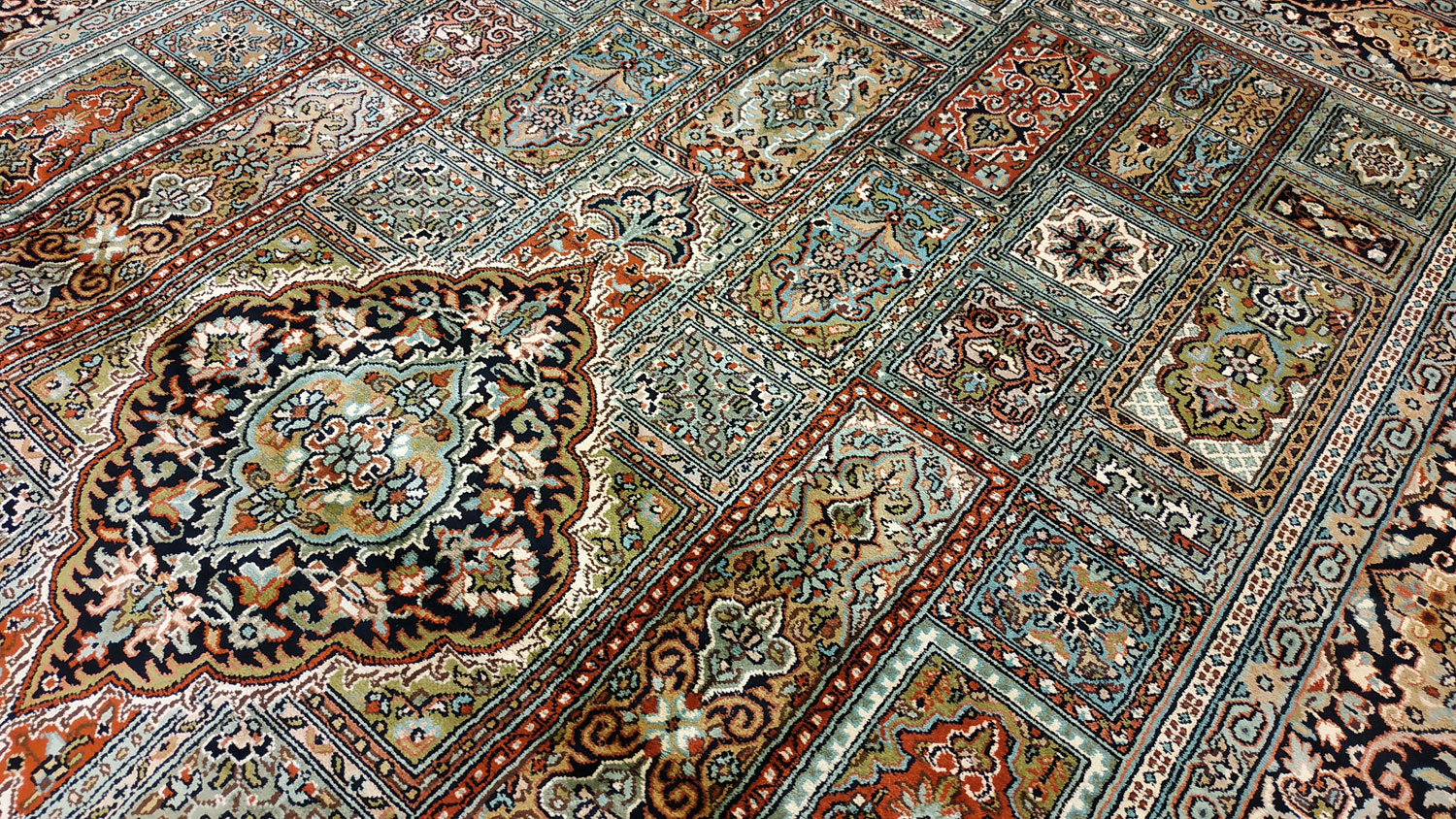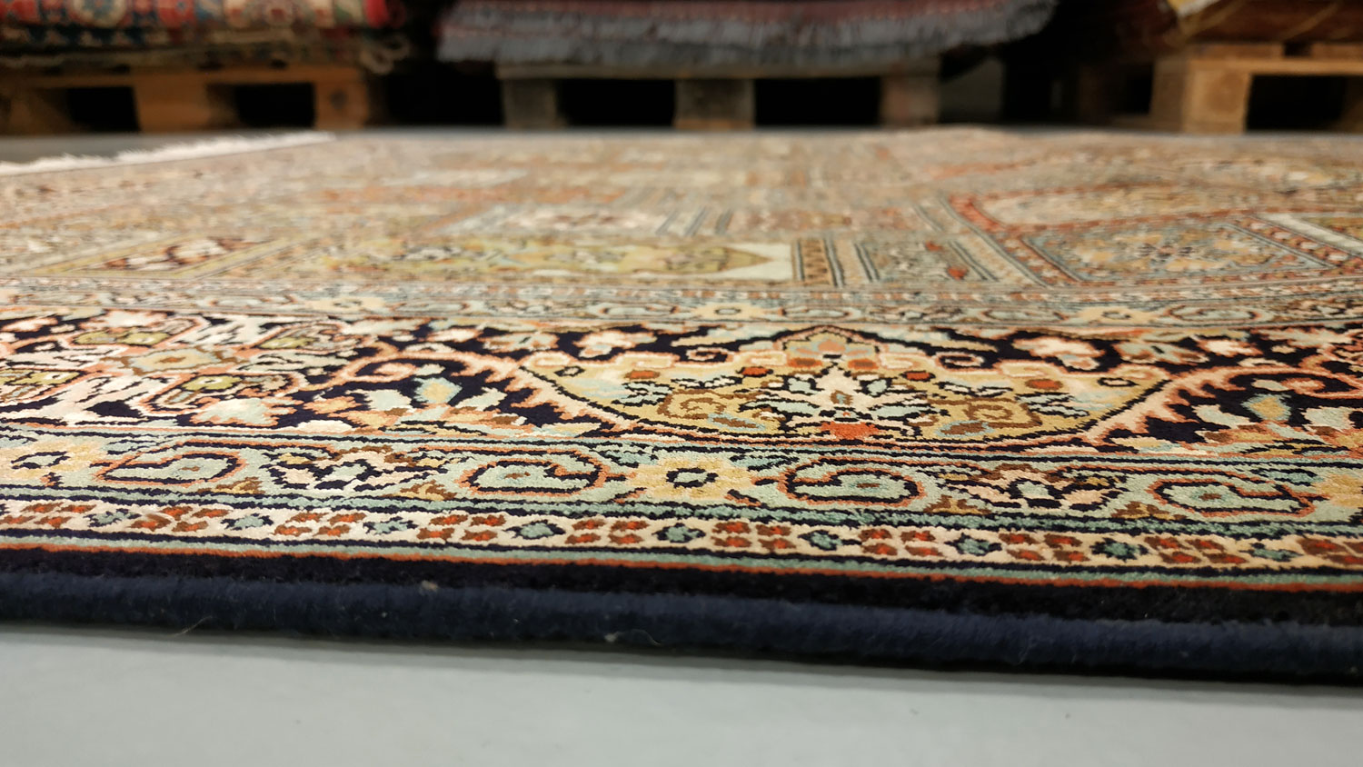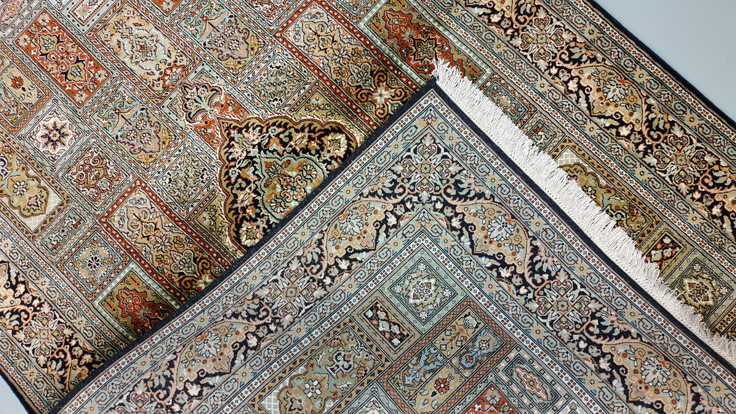 Dimensions : 197 x 123 cm -soie- Pays Inde - Épaisseur : 6 mm - Densité de nouage : 500.000 Nœuds au m² - Surface : 2.42 m² - Poids : 4.85 Kgs - Age : contemporain - Confection : Noué main - Forme : Tapis de chambre - Type : Tapis Oriental