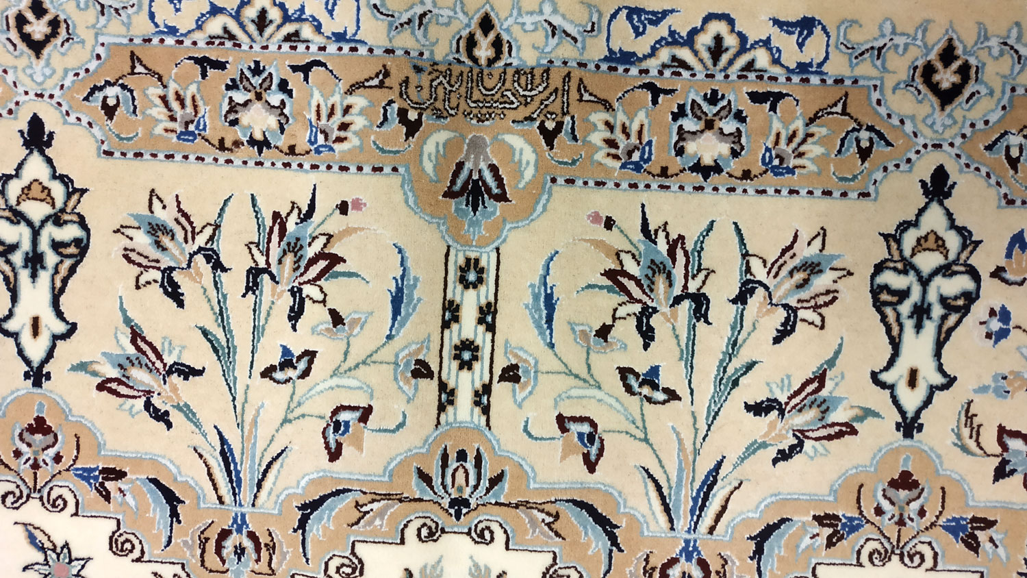Dimensions : 297 x 200 cm -laine et soie- Pays Iran - Épaisseur : 8 mm - Densité de nouage : 800.000 Nœuds au m² - Surface : 5.94 m² - Poids : 14.85 Kgs - Age : contemporain - Confection : Noué main - Forme : Tapis de salon - Type : Tapis persan