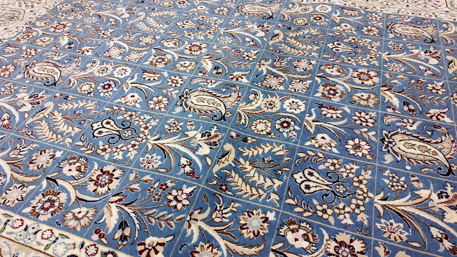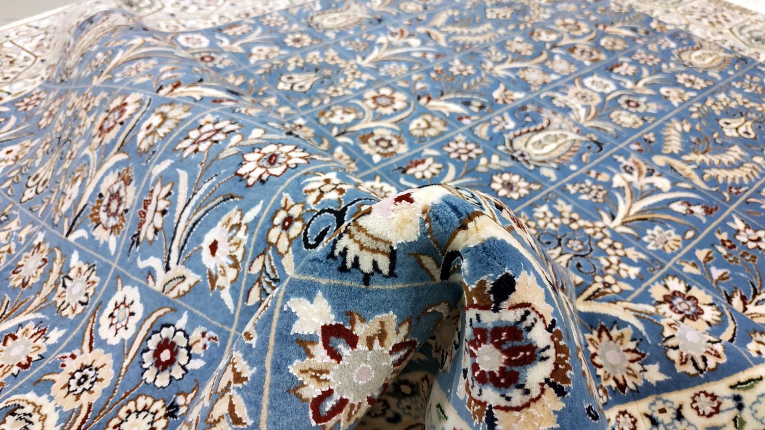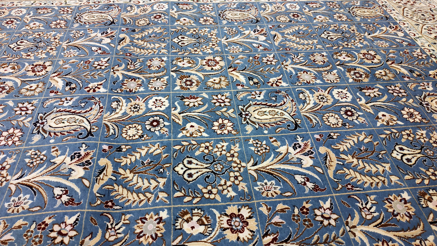 Dimensions : 190 x 128 cm -laine et soie- Pays Iran - Épaisseur : 8 mm - Densité de nouage : 800.000 Nœuds au m² - Surface : 2.43 m² - Poids : 6.08 Kgs - Age : contemporain - Confection : Noué main - Forme : Tapis de chambre - Type : Tapis persan
