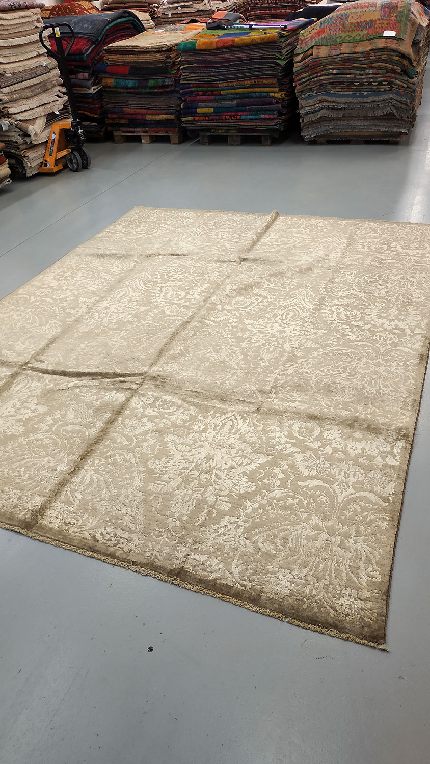 Dimensions : 307 x 248 cm -laine et soie- Pays Afghanistan - Épaisseur : 8 mm - Densité de nouage : 200.000 Nœuds au m² - Surface : 7.61 m² - Poids : 19.03 Kgs - Age : contemporain - Confection : Noué main - Forme : Tapis de salon - Type : Tapis de decoration