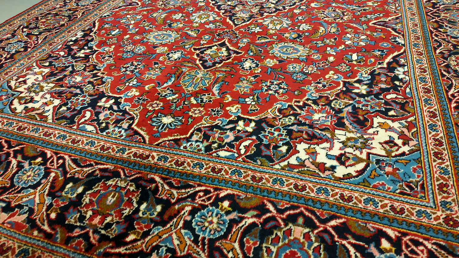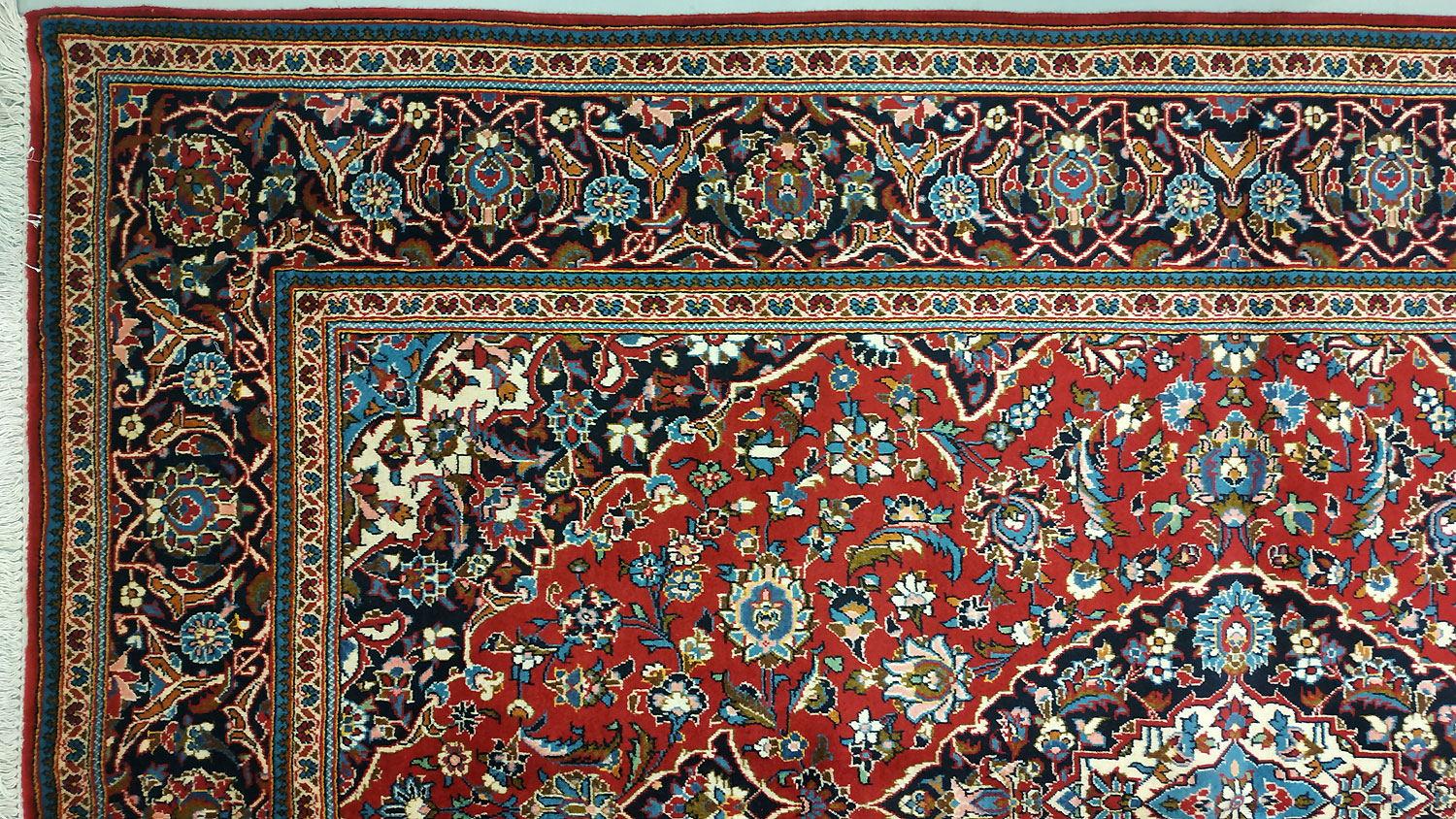 Dimensions : 312 x 207 cm -laine- Pays Iran - Épaisseur : 9 mm - Densité de nouage : 200.000 Nœuds au m² - Surface : 6.46 m² - Poids : 19.38 Kgs - Age : contemporain - Confection : Noué main - Forme : Tapis de salon - Type : Tapis persan