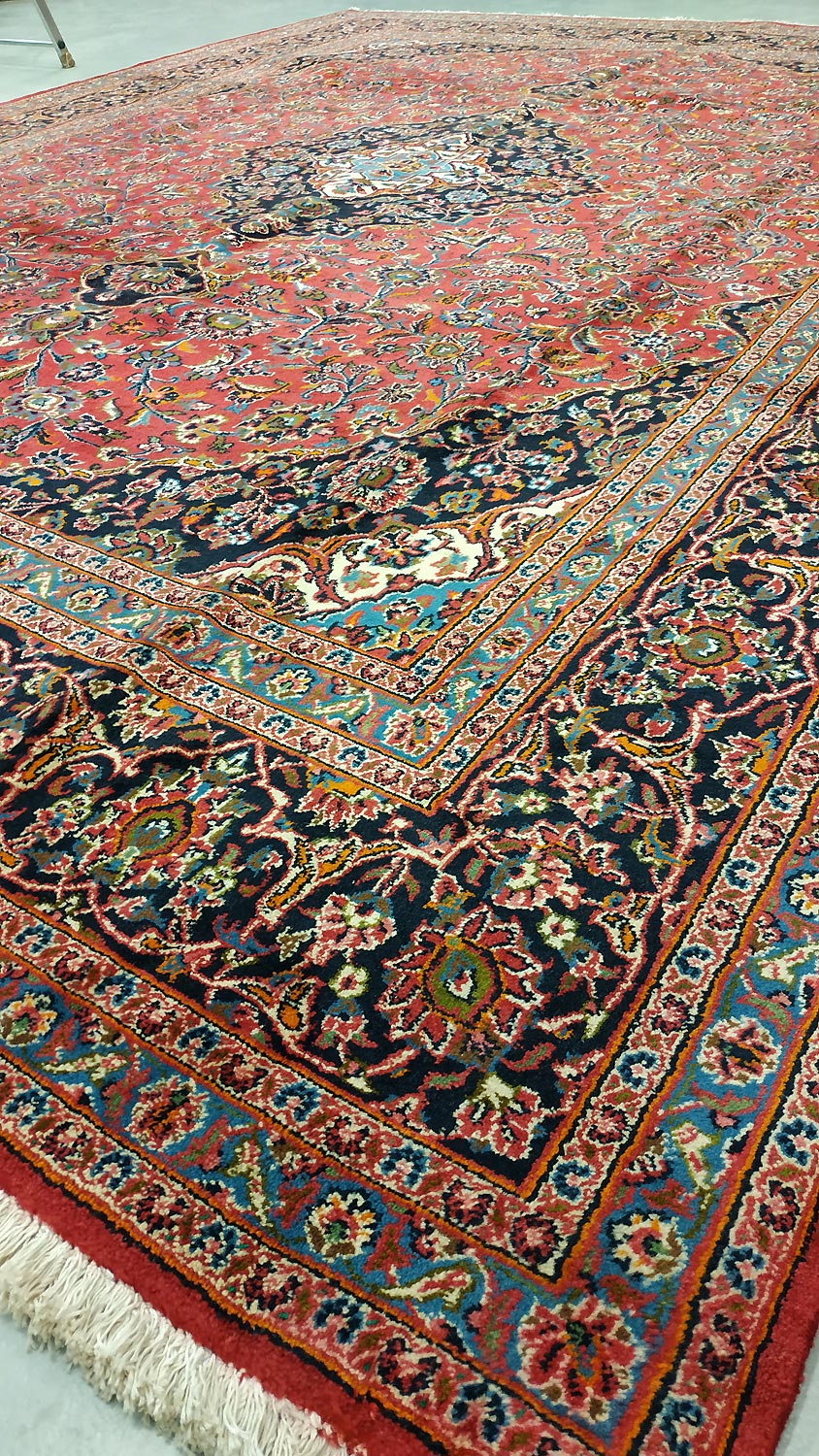 Dimensions : 415 x 310 cm -laine- Pays Iran - Épaisseur : 9 mm - Densité de nouage : 200.000 Nœuds au m² - Surface : 12.87 m² - Poids : 38.6 Kgs - Age : contemporain - Confection : Noué main - Forme : Tapis de salon - Type : Tapis persan