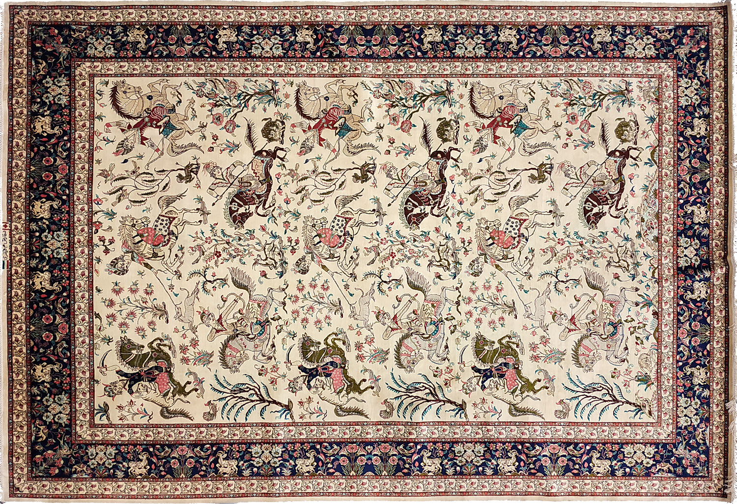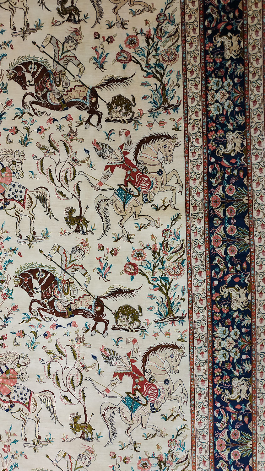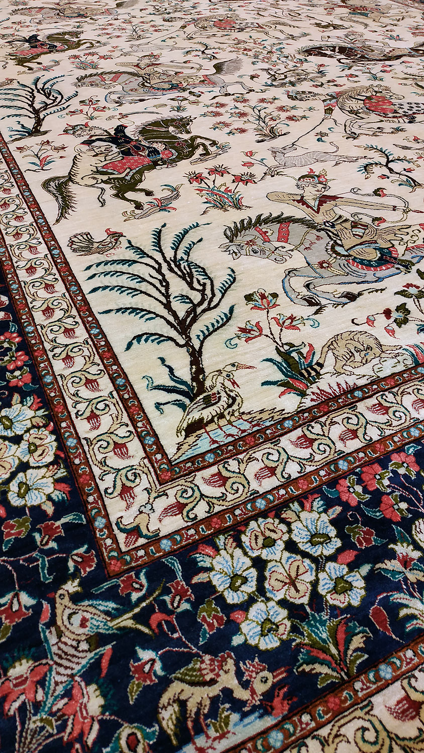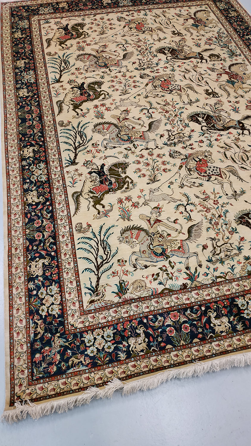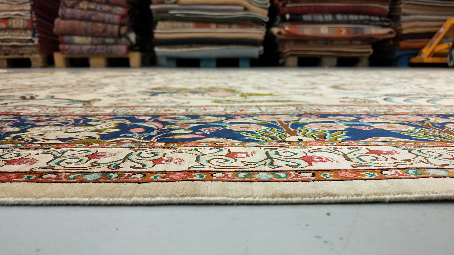 Dimensions : 293 x 198 cm -soie- Pays Iran - Épaisseur : 3 mm - Densité de nouage : 1.000.000 Nœuds au m² - Surface : 5.8 m² - Poids : 11.6 Kgs - Age : contemporain - Confection : Noué main - Forme : Tapis de salon - Type : Tapis persan