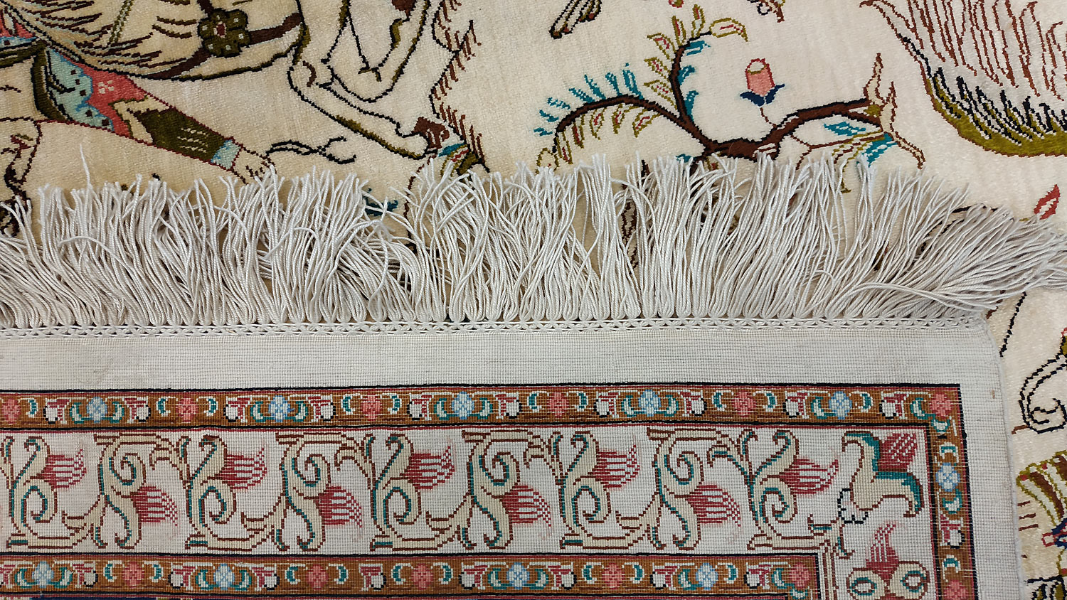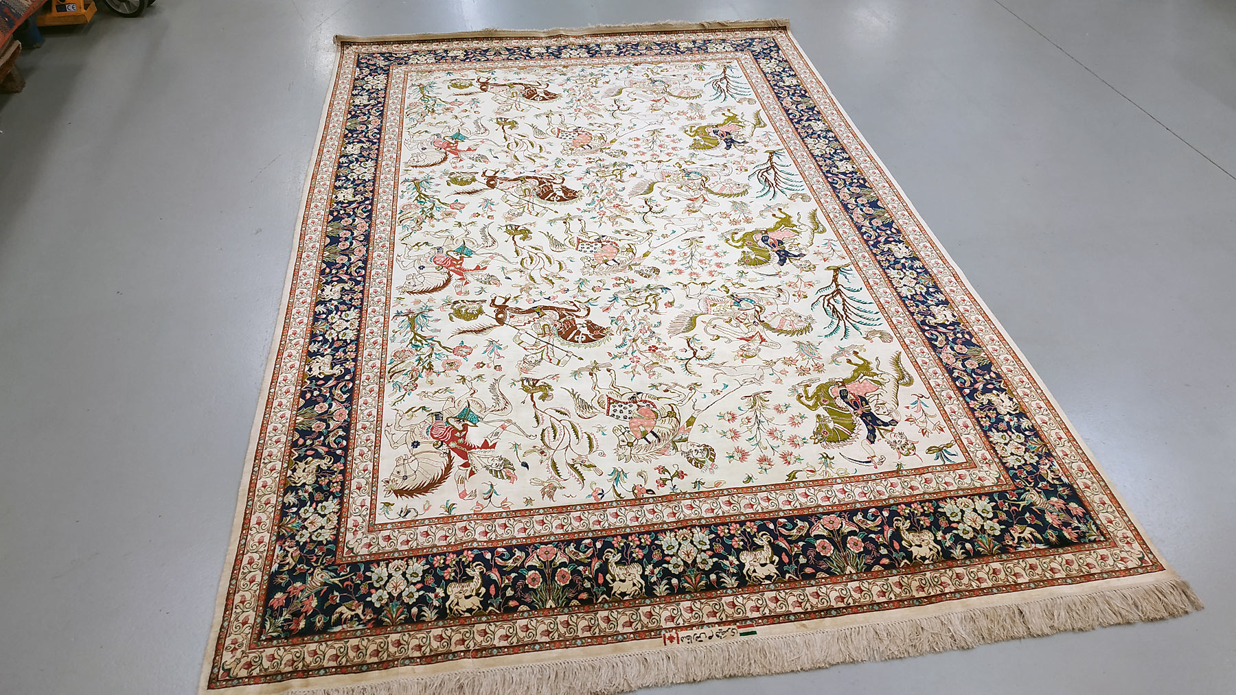 Dimensions : 283 x 185 cm -soie- Pays Iran - Épaisseur : 3 mm - Densité de nouage : 1.000.000 Nœuds au m² - Surface : 5.24 m² - Poids : 10.47 Kgs - Age : contemporain - Confection : Noué main - Forme : Tapis de salon - Type : Tapis persan