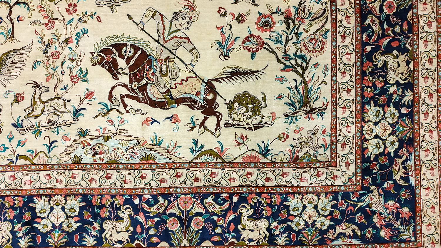 Dimensions : 300 x 200 cm -soie- Pays Iran - Épaisseur : 3 mm - Densité de nouage : 1.000.000 Nœuds au m² - Surface : 6 m² - Poids : 12 Kgs - Age : contemporain - Confection : Noué main - Forme : Tapis de salon - Type : Tapis persan