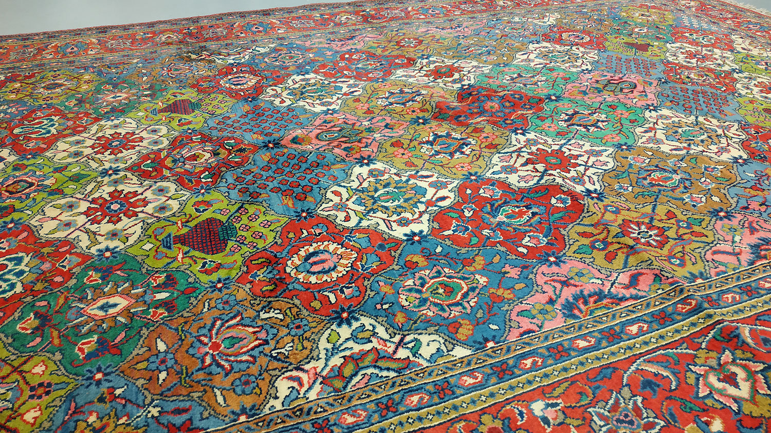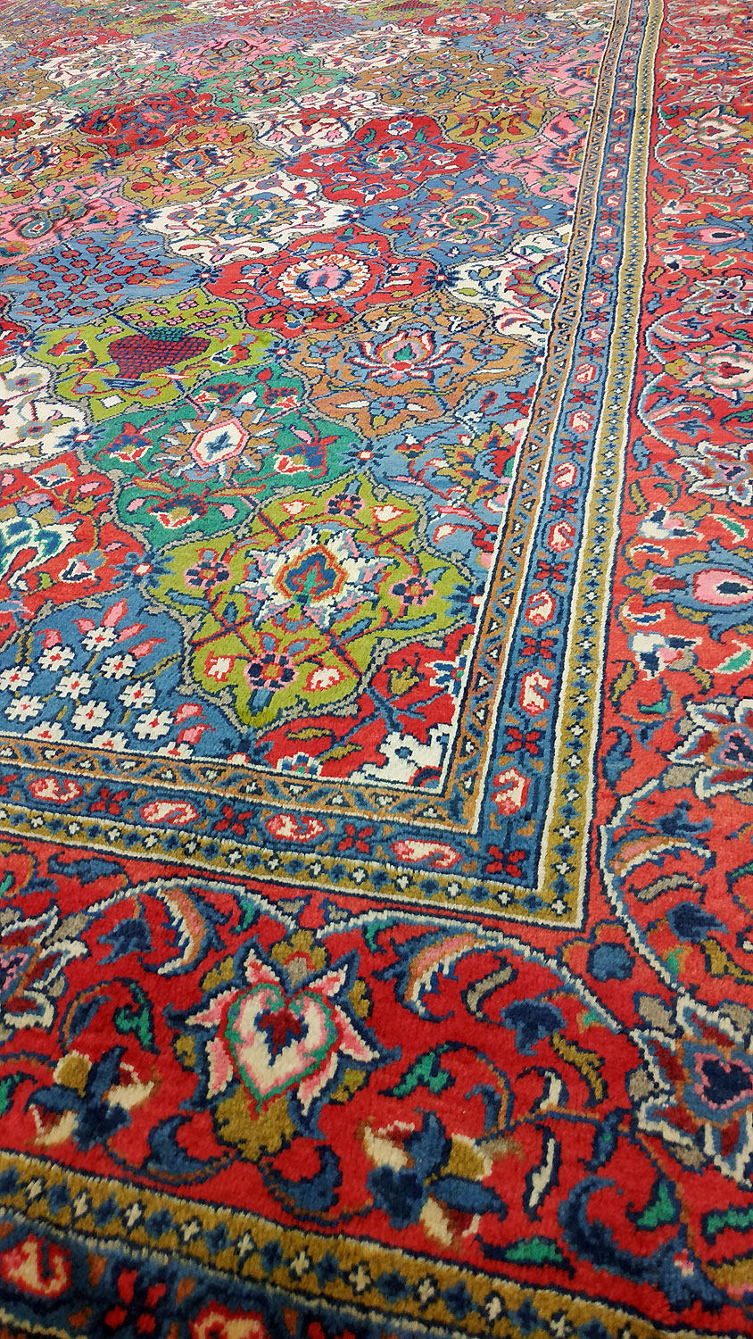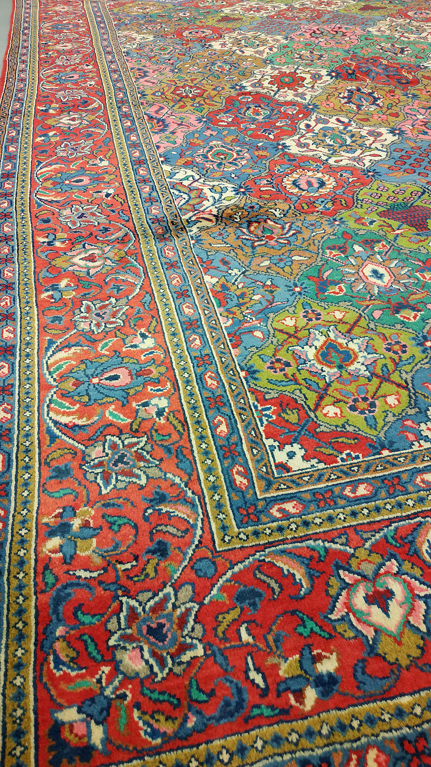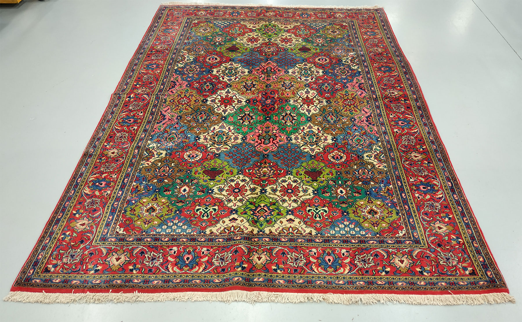 Dimensions : 295 x 193 cm -laine- Pays Iran - Épaisseur : mm - Densité de nouage : Nœuds au m² - Surface : 0 m² - Poids : 0 Kgs - Age : - Confection : - Forme : - Type :