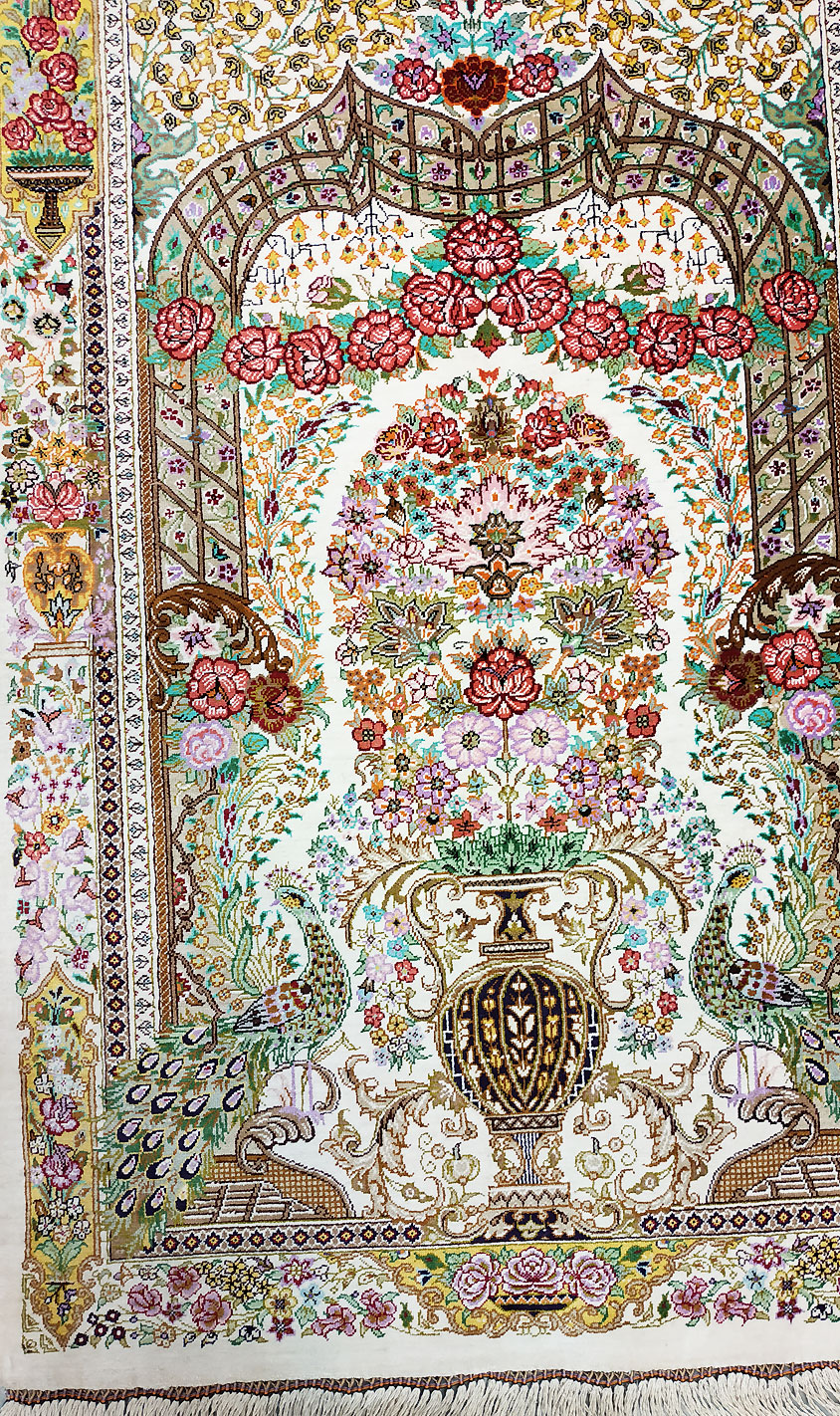 Dimensions : 117 x 80 cm -soie- Pays Iran - Épaisseur : 3 mm - Densité de nouage : 1.000.000 Nœuds au m² - Surface : 0.94 m² - Poids : 1.87 Kgs - Age : contemporain - Confection : Noué main - Forme : Tapis de chambre - Type : Tapis persan