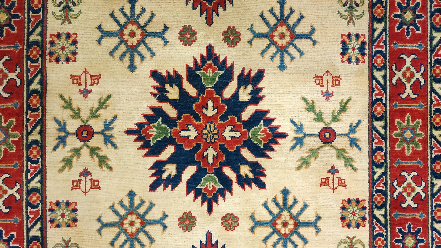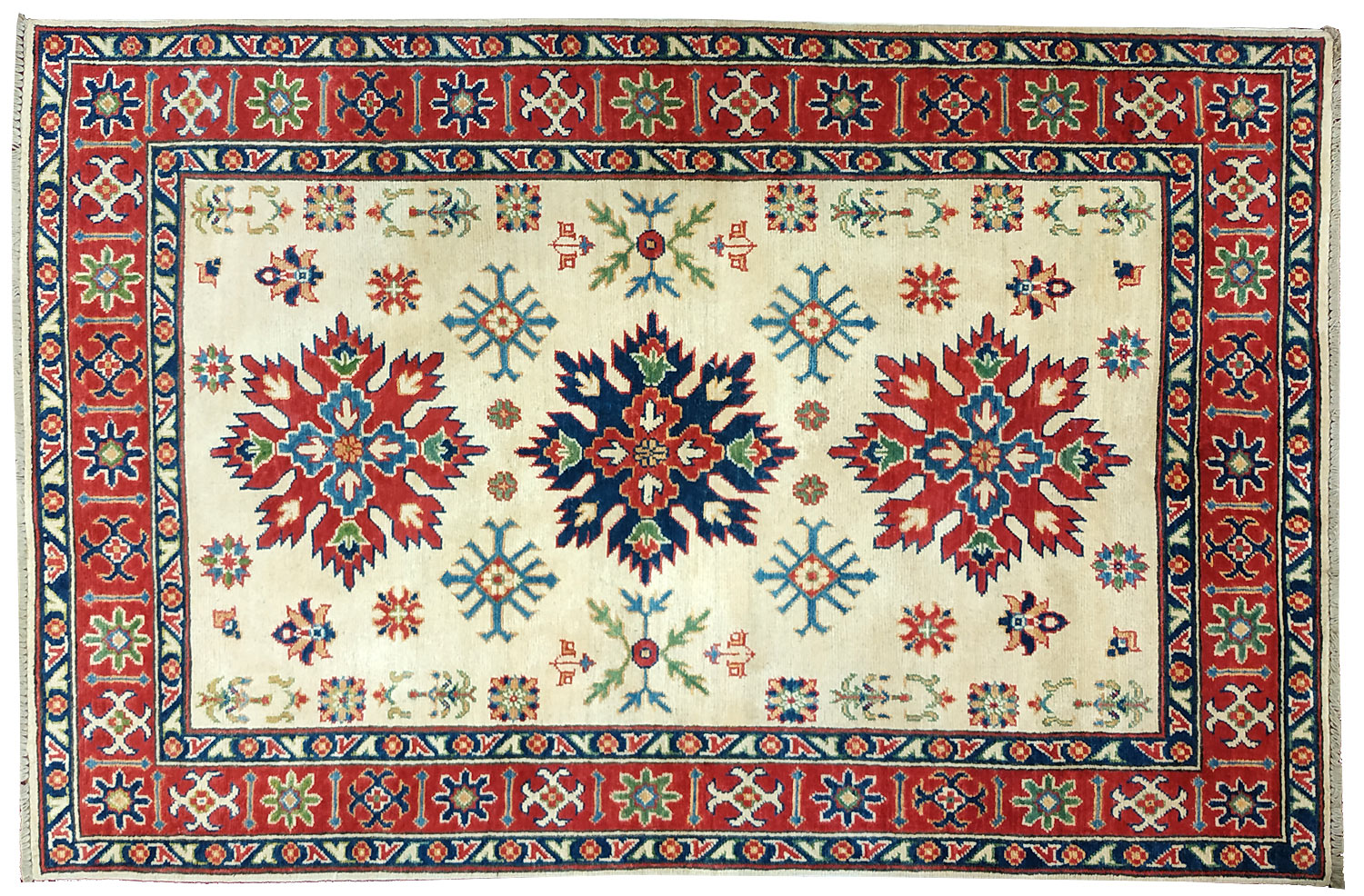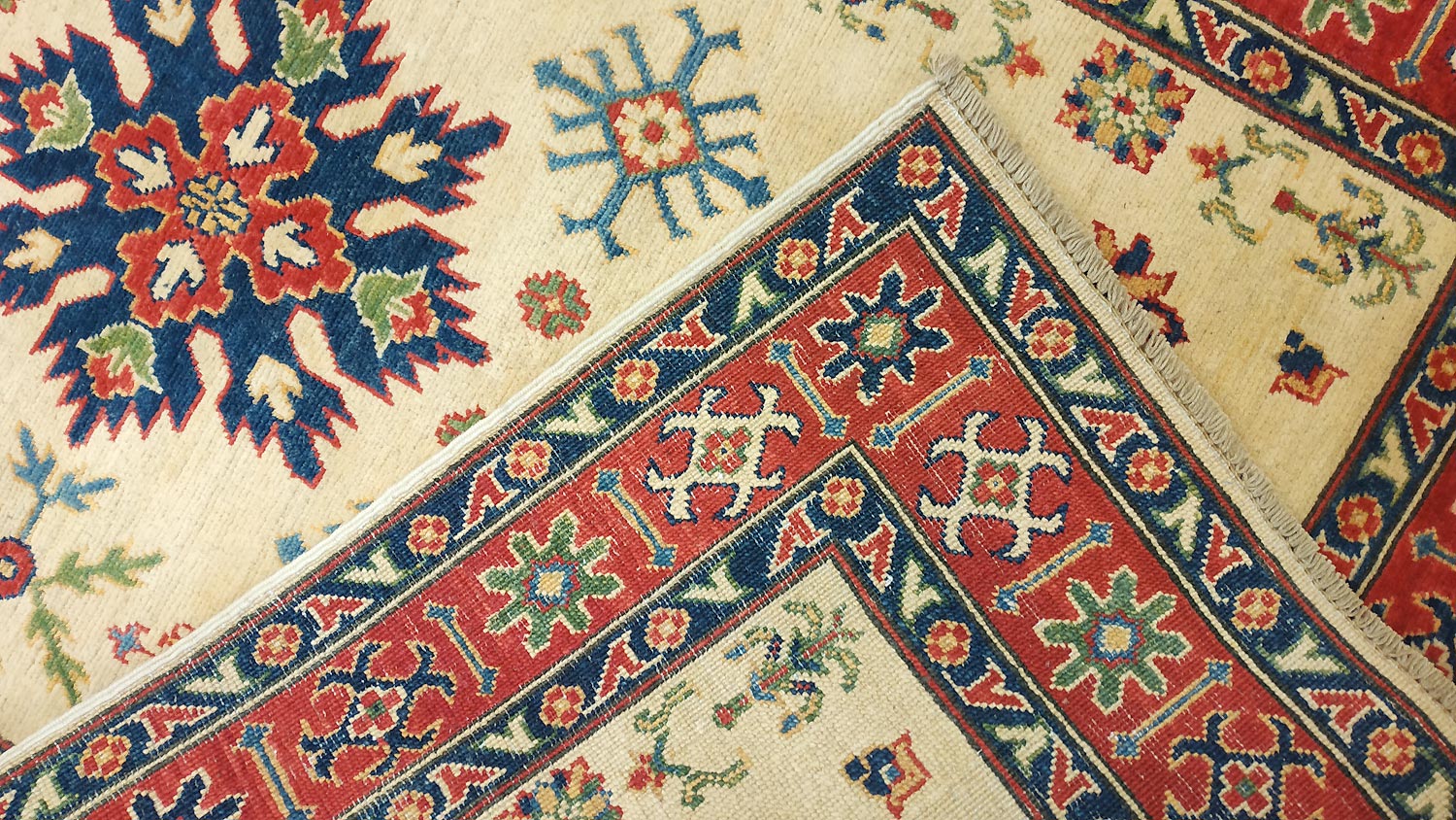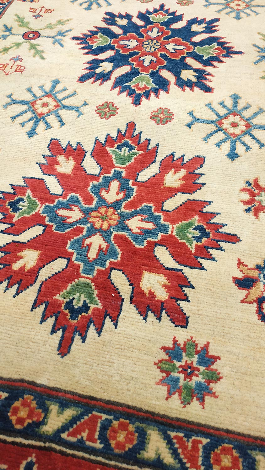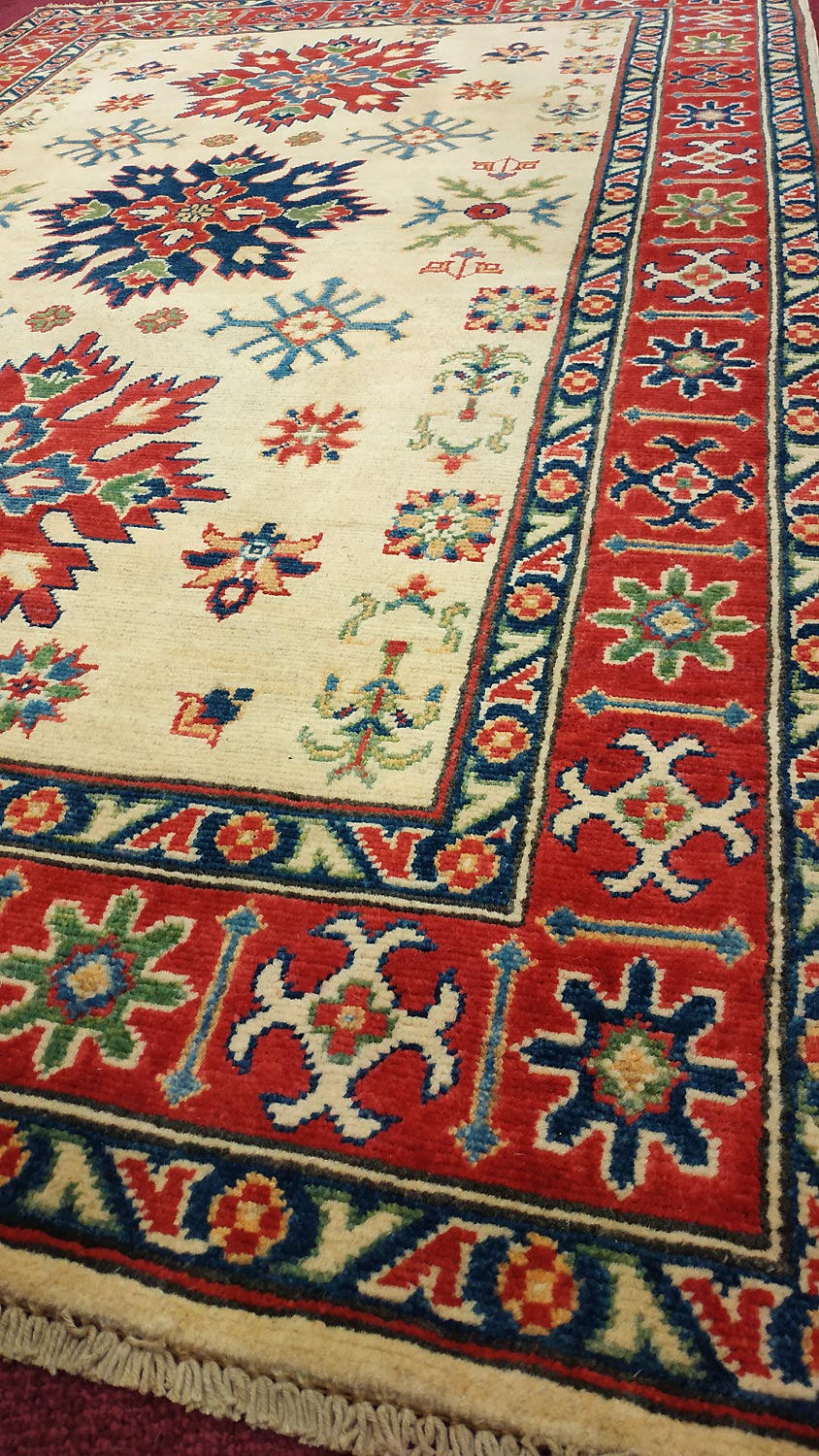 Dimensions : 185 x 120 cm -laine- Pays Afghanistan - Épaisseur : 8 mm - Densité de nouage : 300.000 Nœuds au m² - Surface : 2.22 m² - Poids : 6.66 Kgs - Age : contemporain - Confection : Noué main - Forme : Tapis de chambre - Type : Tapis Oriental