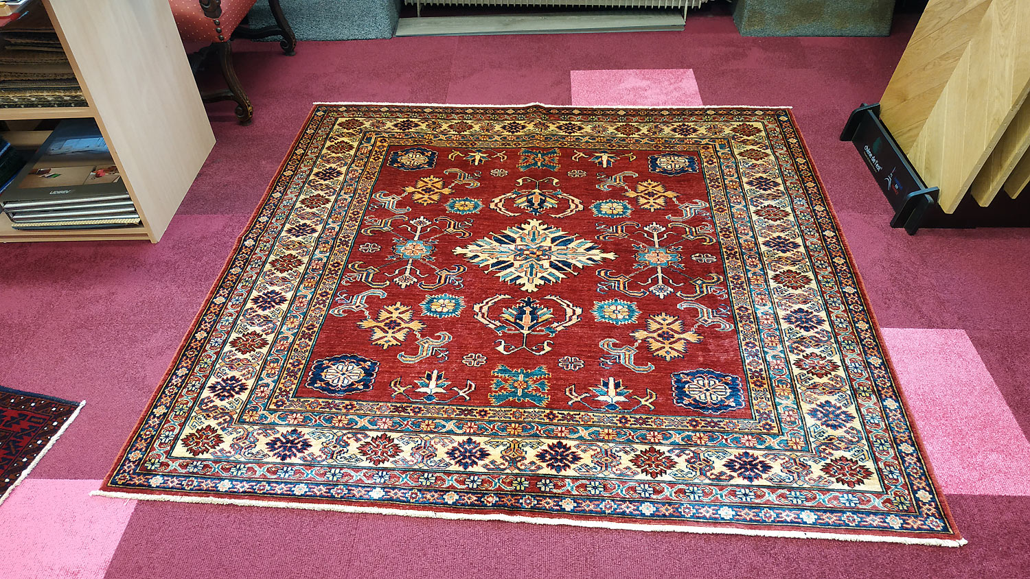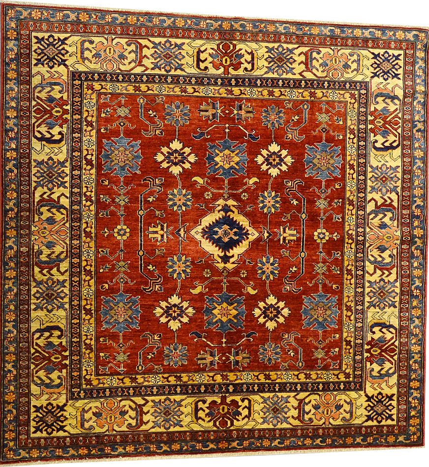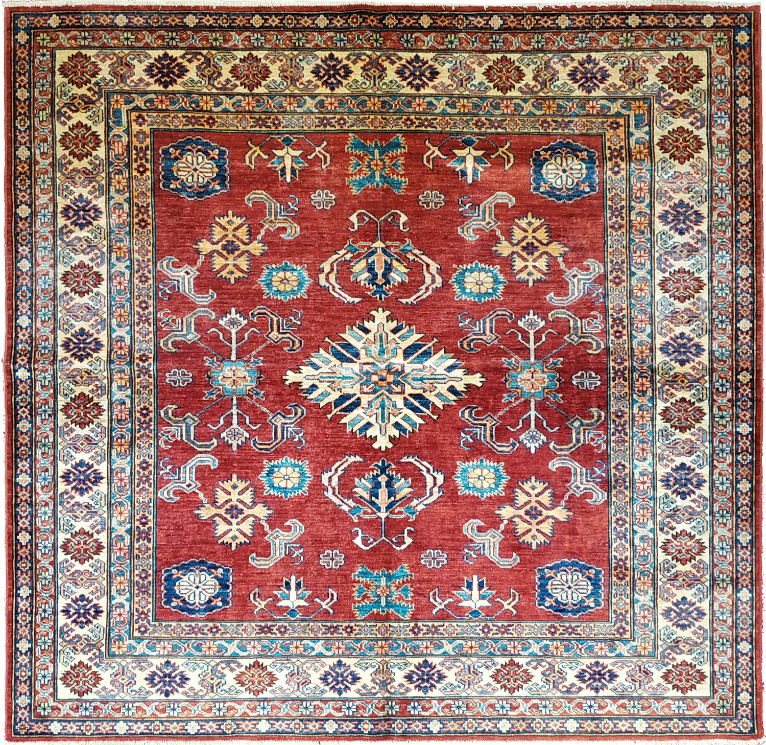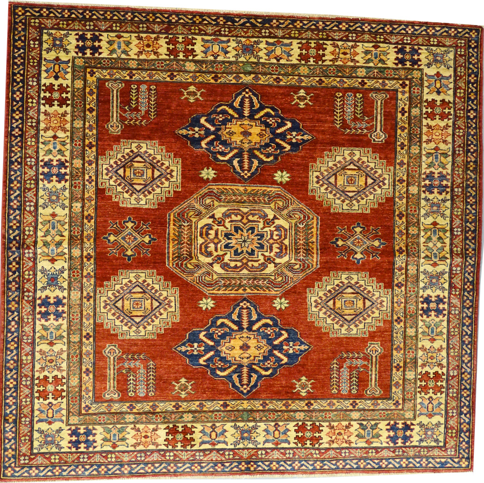 Dimensions : 198 x 197 cm -laine- Pays Afghanistan - Épaisseur : 8 mm - Densité de nouage : 300.000 Nœuds au m² - Surface : 3.9 m² - Poids : 11.7 Kgs - Age : contemporain - Confection : Noué main - Forme : Tapis carré - Type : Tapis Oriental