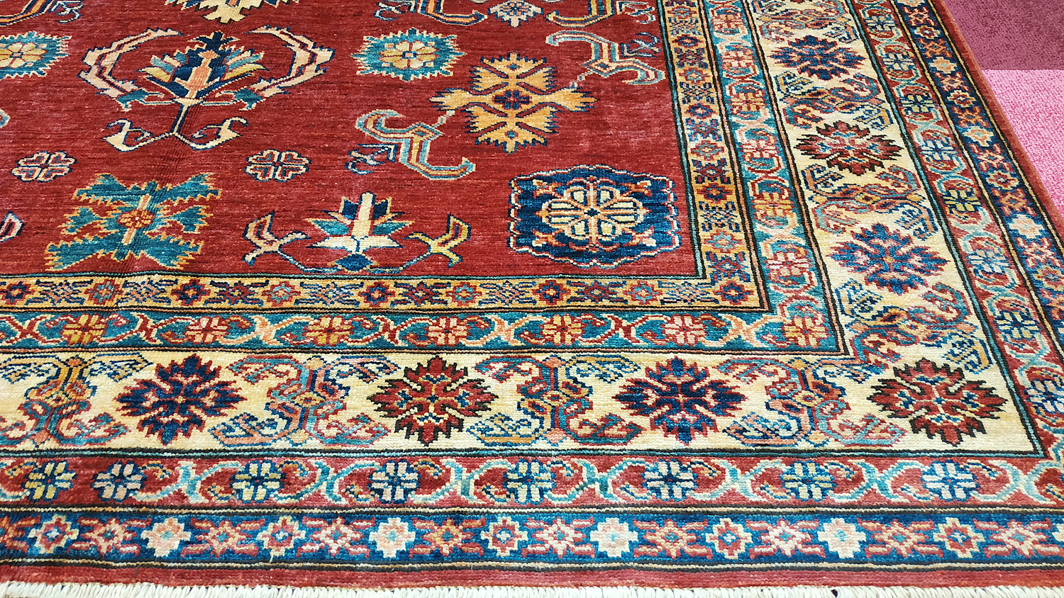 Dimensions : 195 x 175 cm -laine- Pays Afghanistan - Épaisseur : 8 mm - Densité de nouage : 300.000 Nœuds au m² - Surface : 3.41 m² - Poids : 10.24 Kgs - Age : contemporain - Confection : Noué main - Forme : Tapis carré - Type : Tapis Oriental