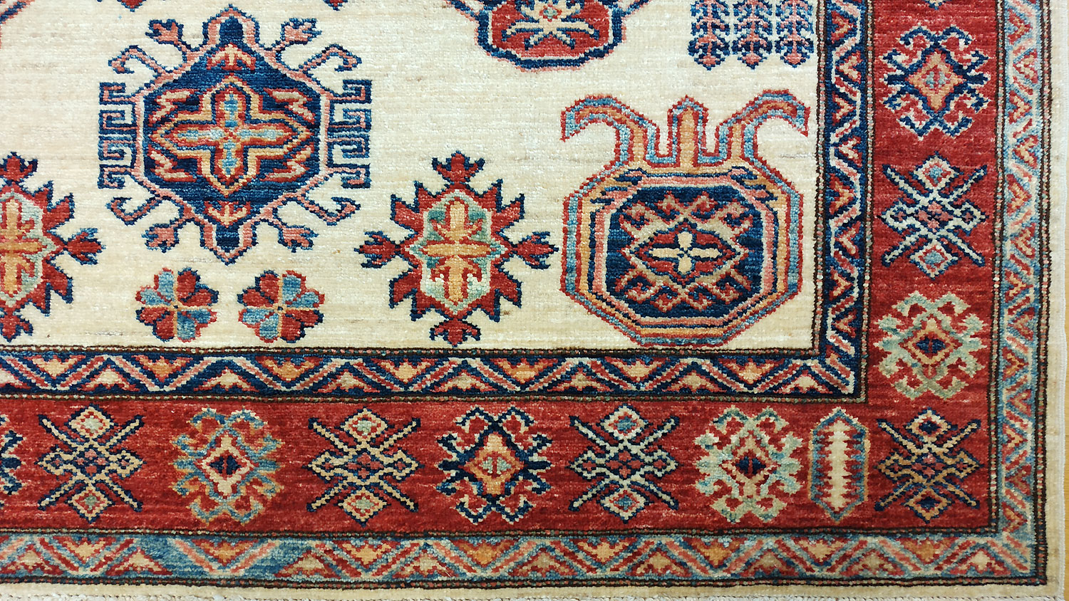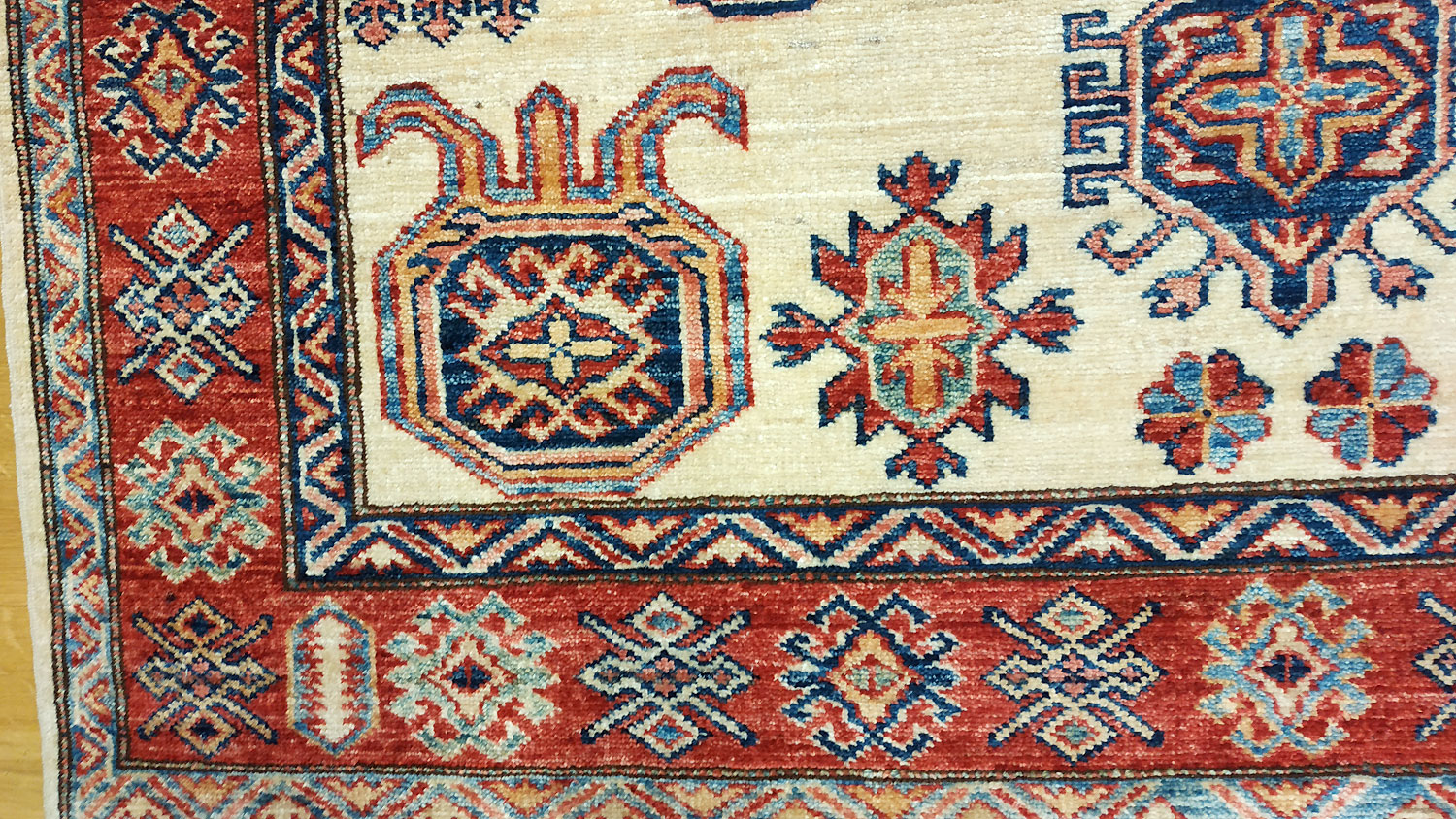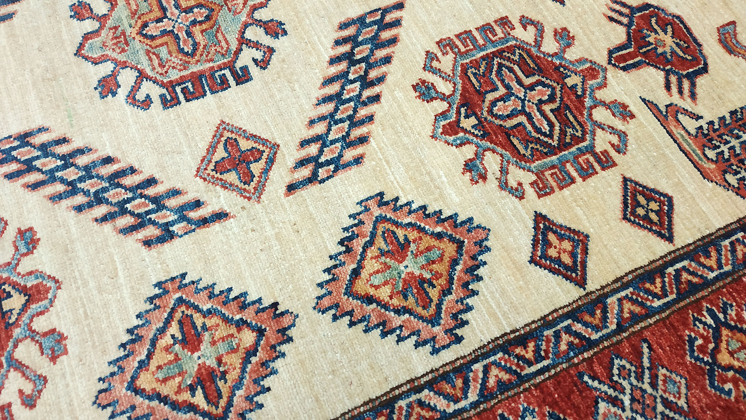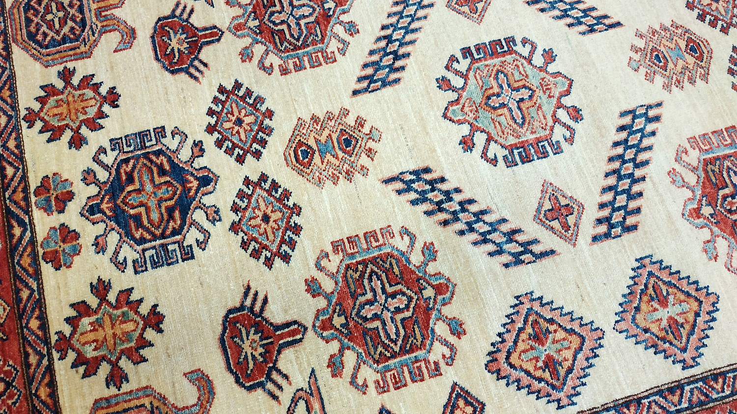 Dimensions : 179 x 124 cm -laine- Pays Afghanistan - Épaisseur : 8 mm - Densité de nouage : 300.000 Nœuds au m² - Surface : 2.22 m² - Poids : 6.66 Kgs - Age : contemporain - Confection : Noué main - Forme : Tapis de chambre - Type : Tapis Oriental