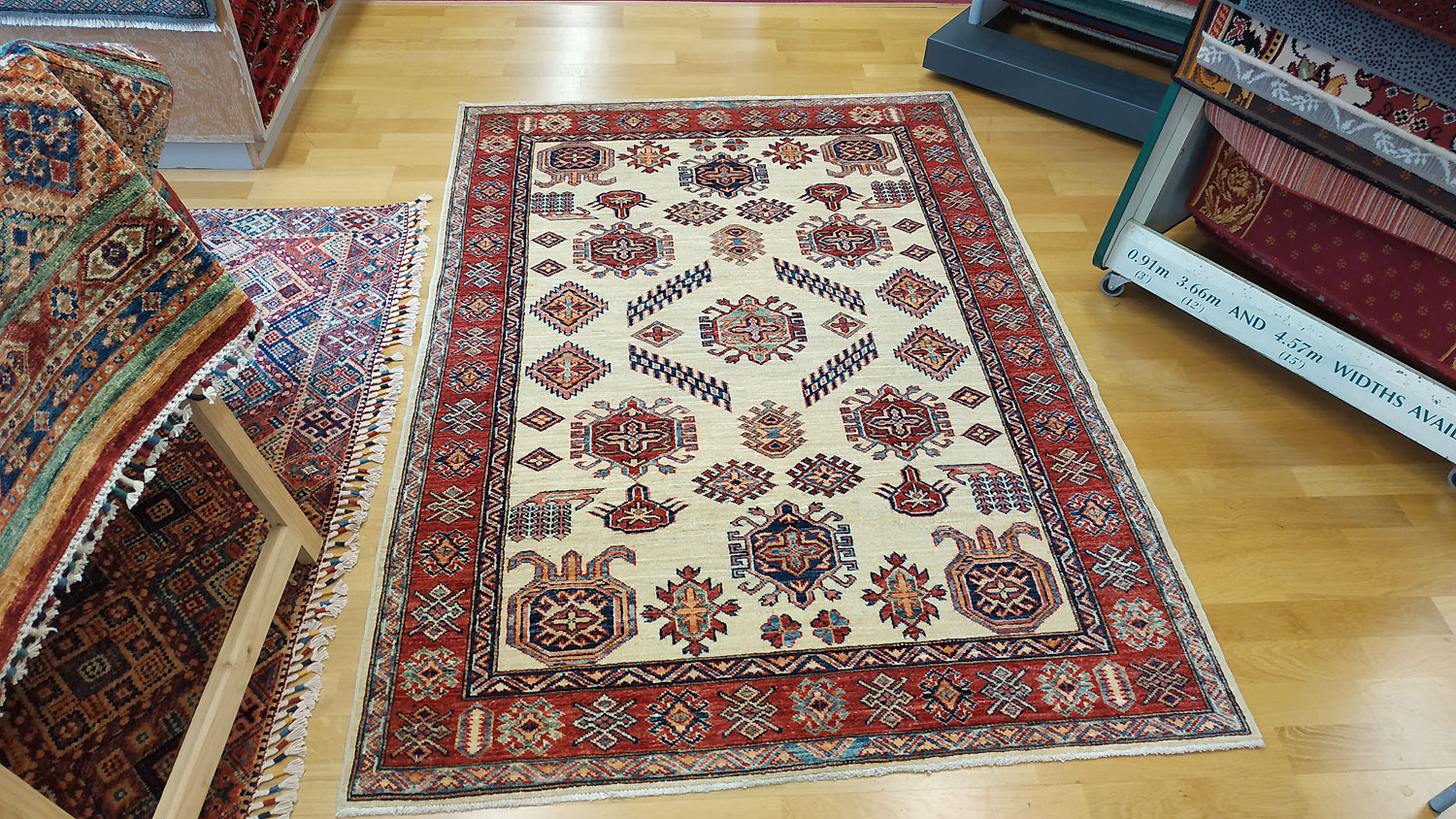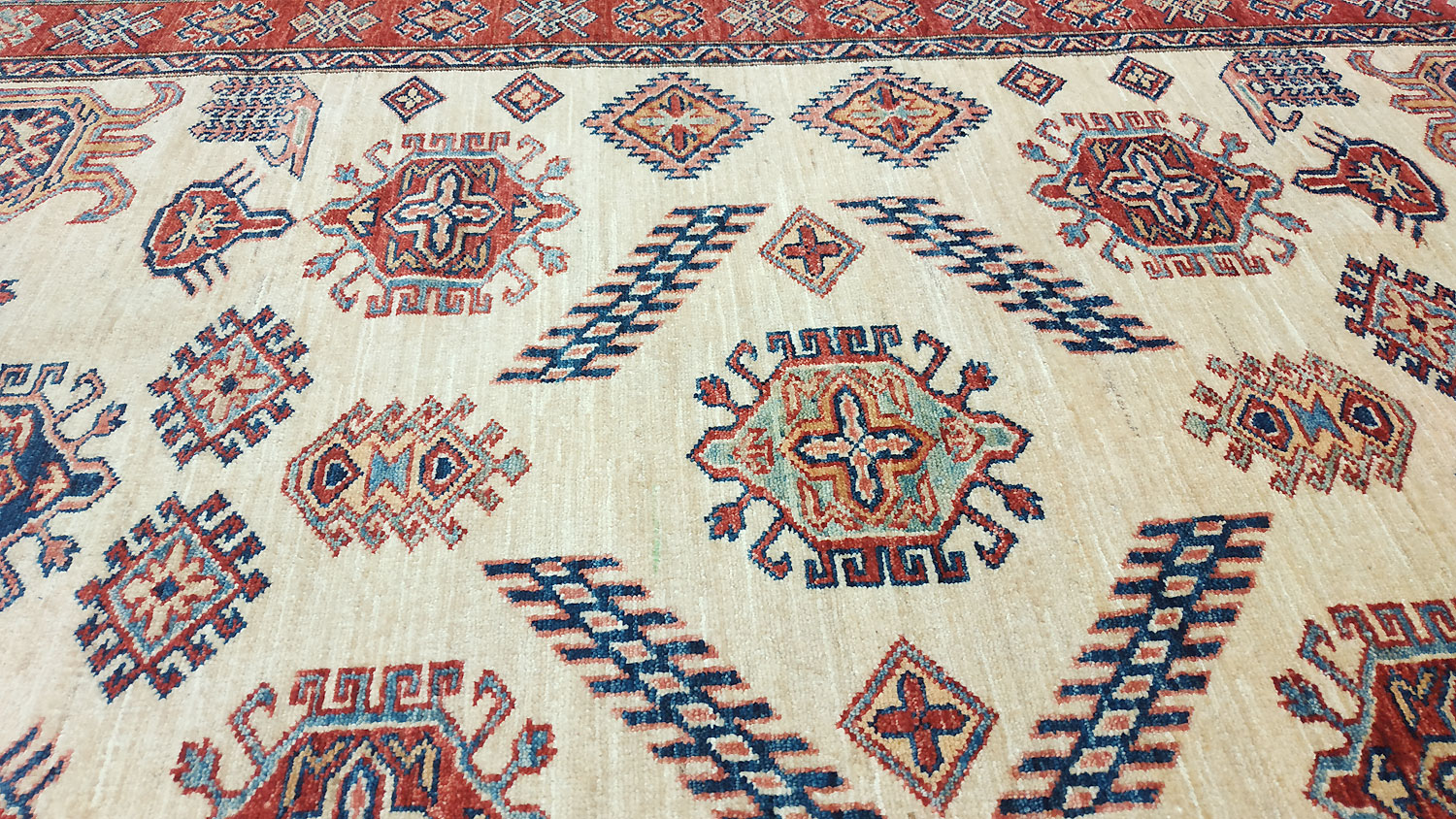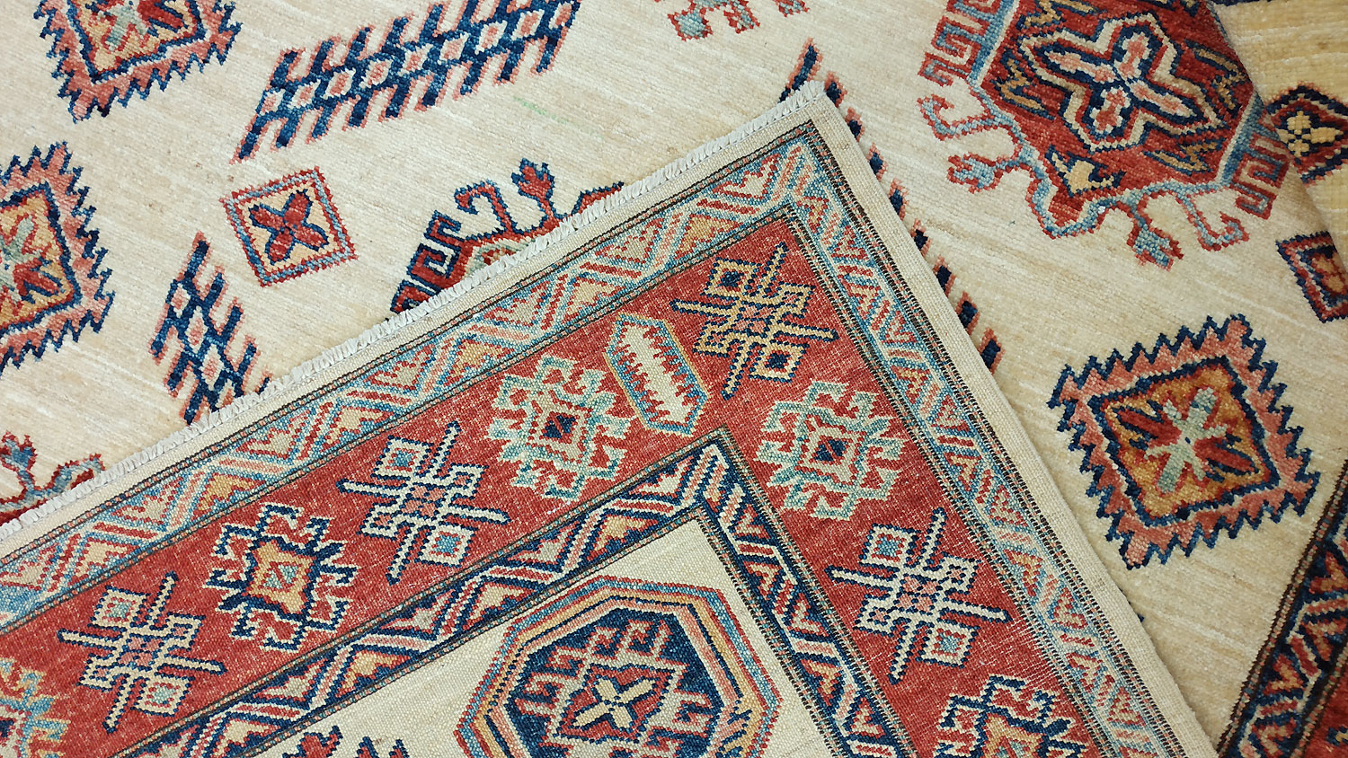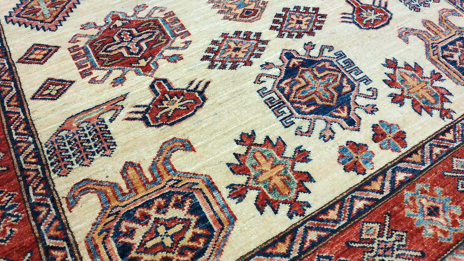 Dimensions : 179 x 124 cm -laine- Pays Afghanistan - Épaisseur : 8 mm - Densité de nouage : 300.000 Nœuds au m² - Surface : 2.22 m² - Poids : 6.66 Kgs - Age : contemporain - Confection : Noué main - Forme : Tapis de chambre - Type : Tapis Oriental