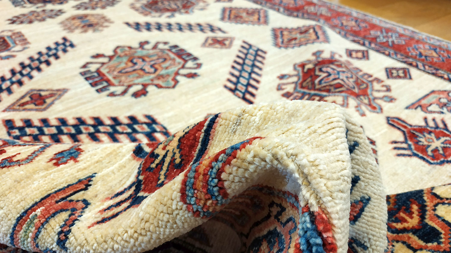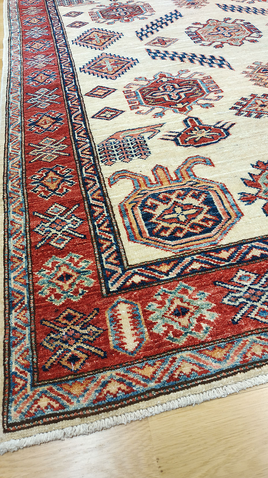 Dimensions : 185 x 120 cm -laine- Pays Afghanistan - Épaisseur : 8 mm - Densité de nouage : 300.000 Nœuds au m² - Surface : 2.22 m² - Poids : 6.66 Kgs - Age : contemporain - Confection : Noué main - Forme : Tapis de chambre - Type : Tapis Oriental