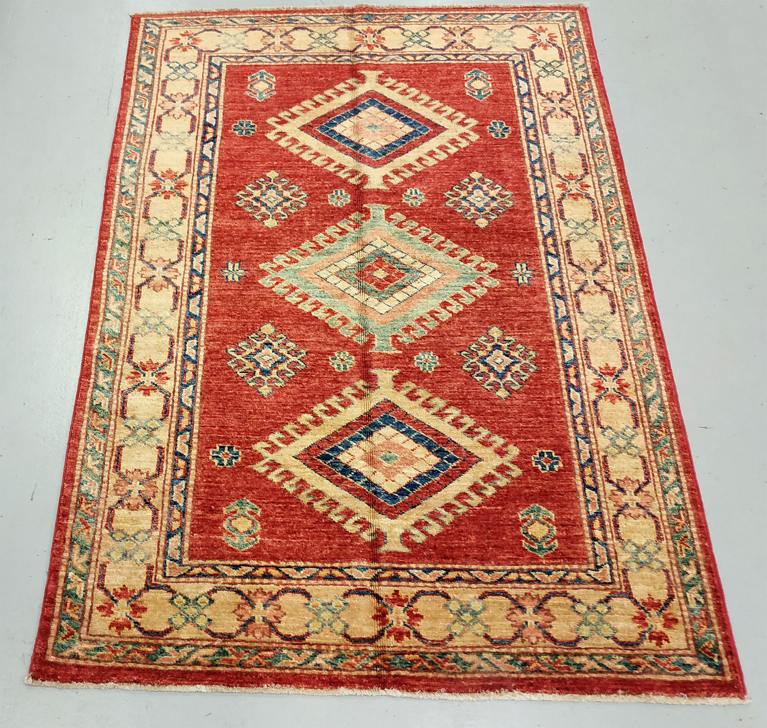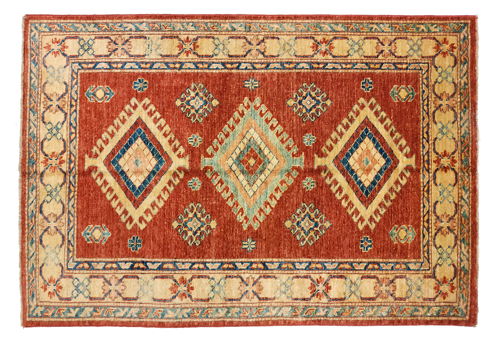Dimensions : 132 x 97 cm -laine- Pays Afghanistan - Épaisseur : 8 mm - Densité de nouage : 300.000 Nœuds au m² - Surface : 1.28 m² - Poids : 3.84 Kgs - Age : contemporain - Confection : Noué main - Forme : Tapis de chambre - Type : Tapis Oriental