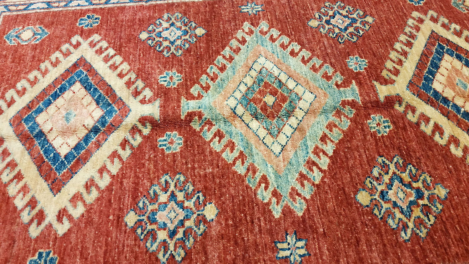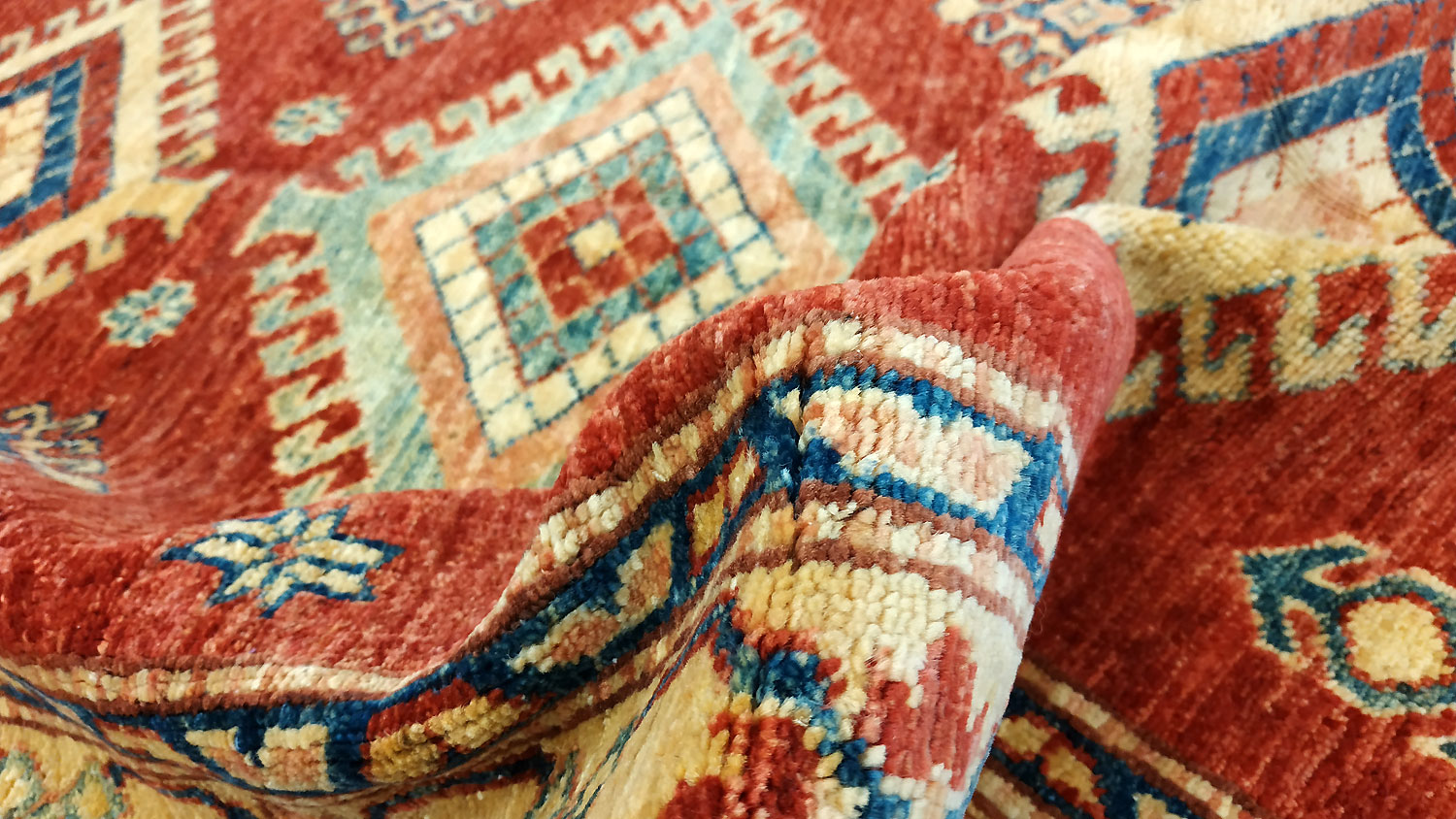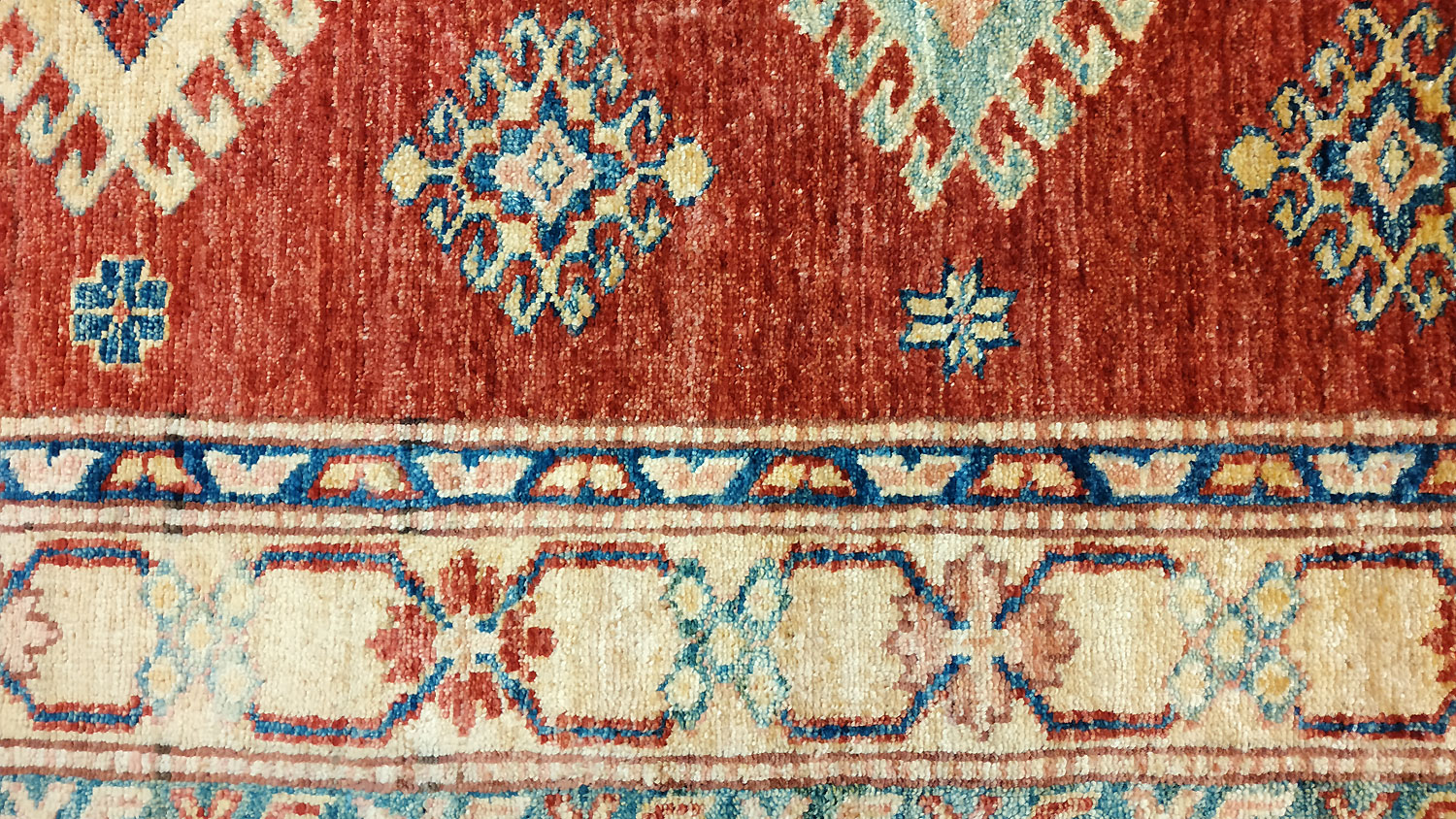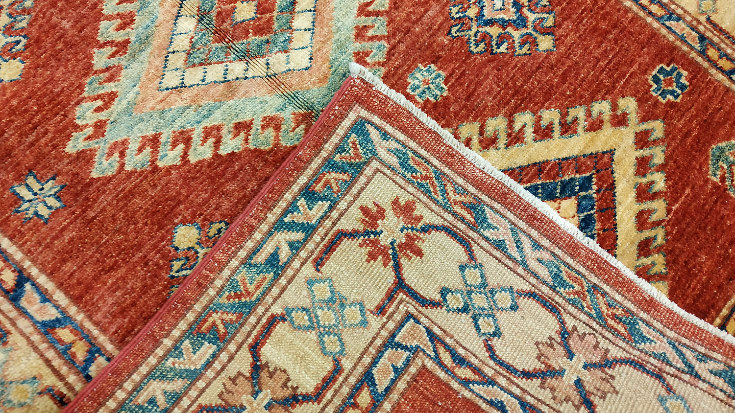 Dimensions : 144 x 88 cm -laine- Pays Afghanistan - Épaisseur : 8 mm - Densité de nouage : 300.000 Nœuds au m² - Surface : 1.27 m² - Poids : 3.8 Kgs - Age : contemporain - Confection : Noué main - Forme : Tapis de chambre - Type : Tapis Oriental
