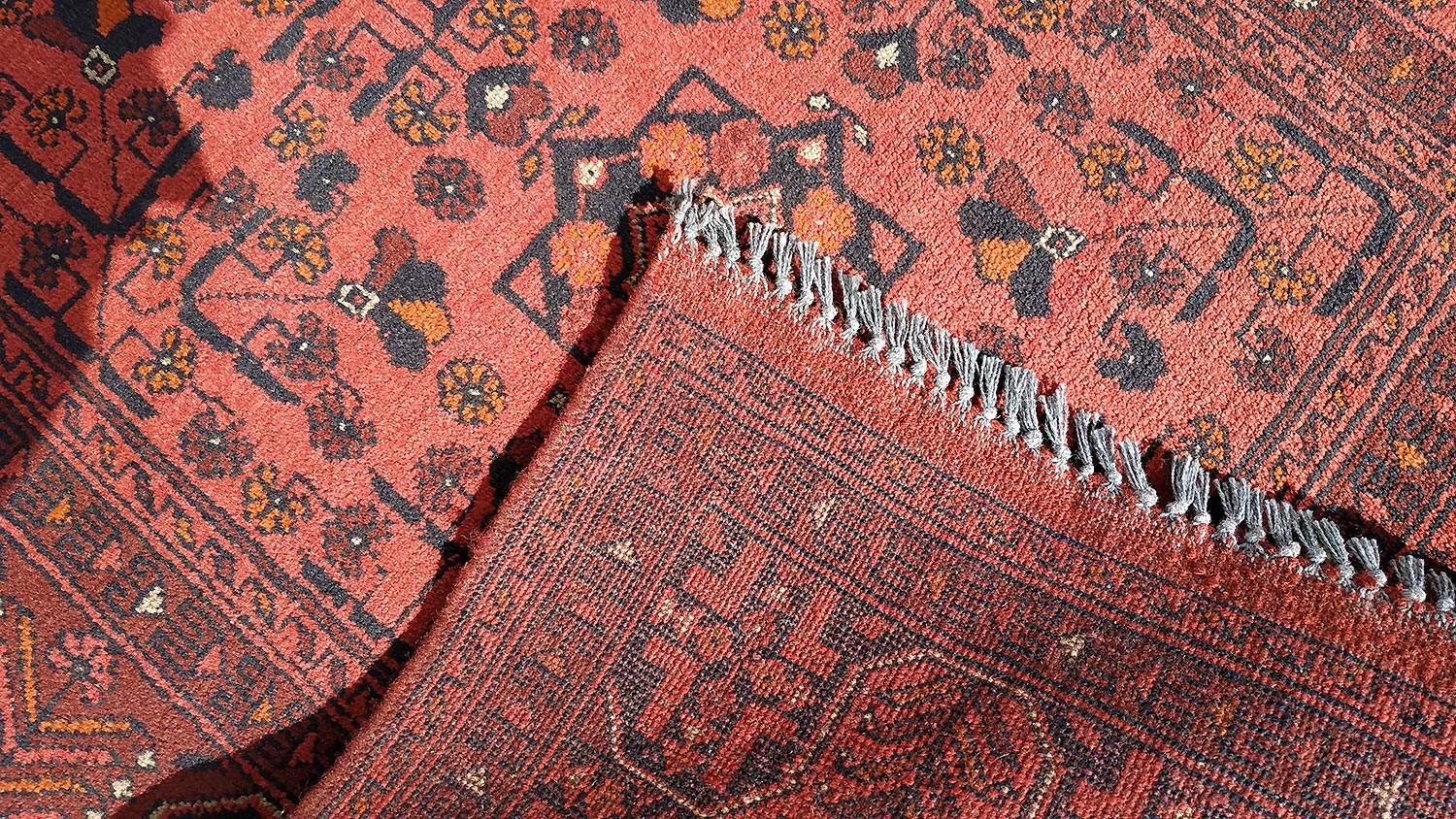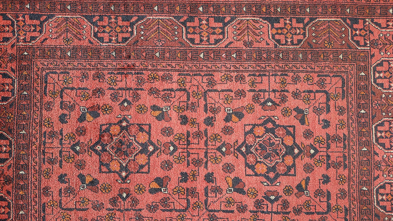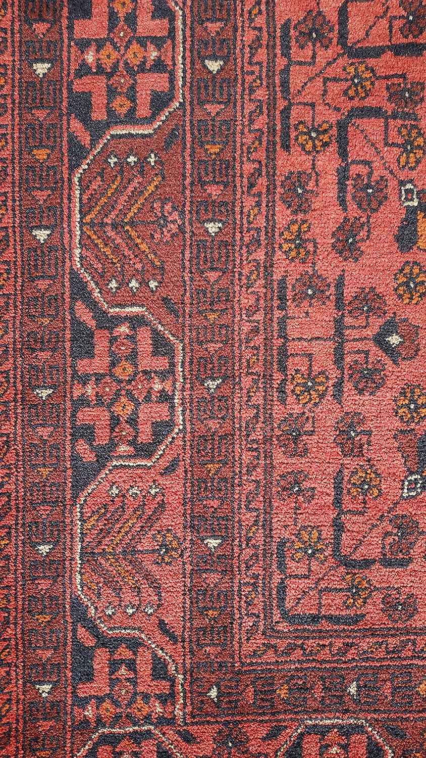 Dimensions : 147 x 96 cm -laine- Pays Afghanistan - Épaisseur : mm - Densité de nouage : Nœuds au m² - Surface : 0 m² - Poids : 0 Kgs - Age : - Confection : - Forme : - Type :