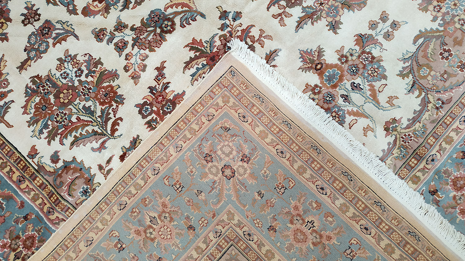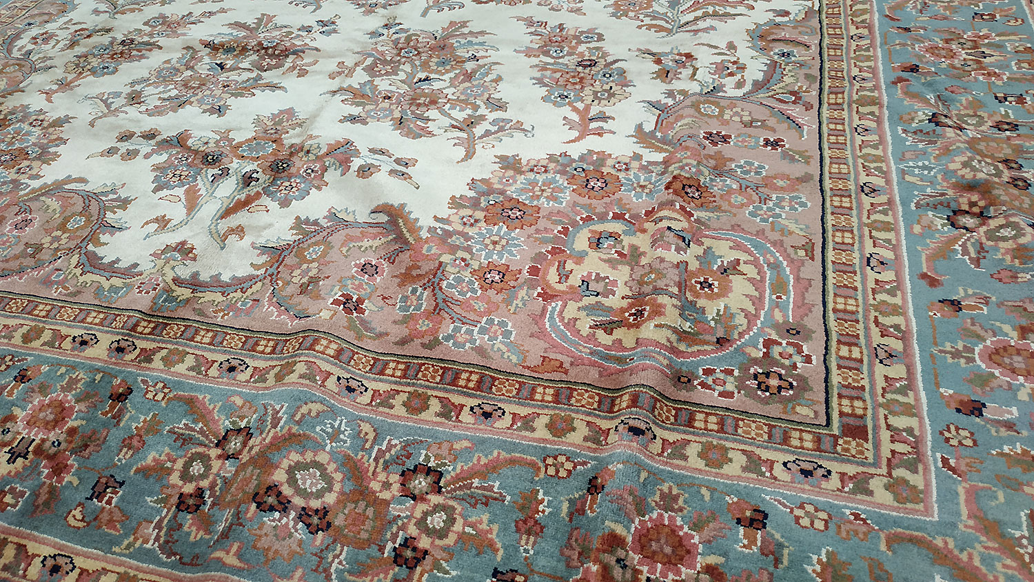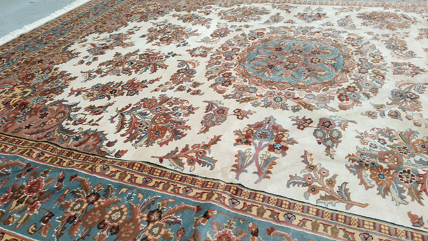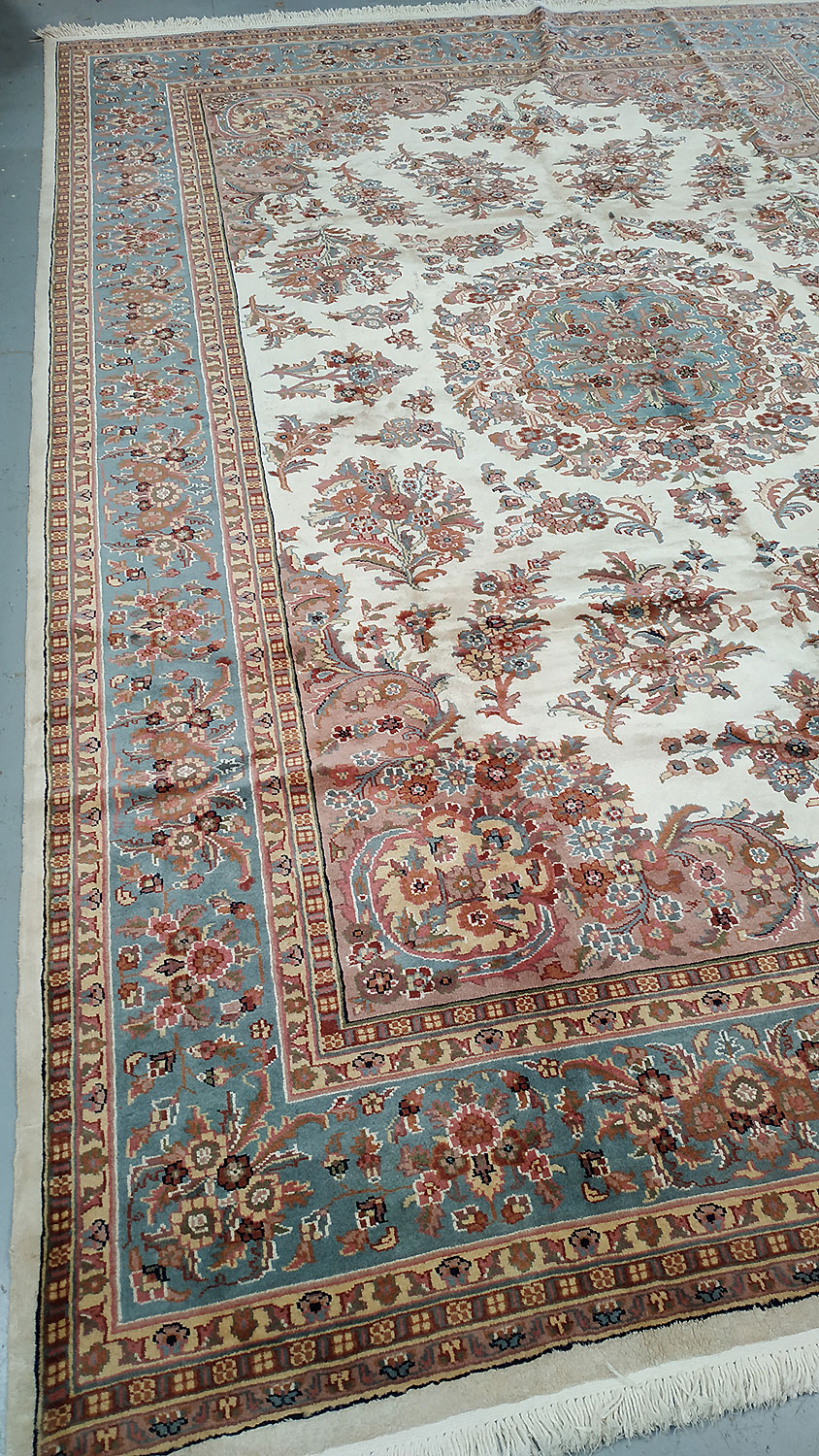 Dimensions : 309 x 214 cm -laine et soie- Pays Pakistan - Épaisseur : 7 mm - Densité de nouage : 200.000 Nœuds au m² - Surface : 6.61 m² - Poids : 16.53 Kgs - Age : contemporain - Confection : Noué main - Forme : Tapis de salon - Type : Tapis Oriental