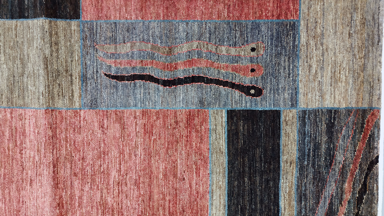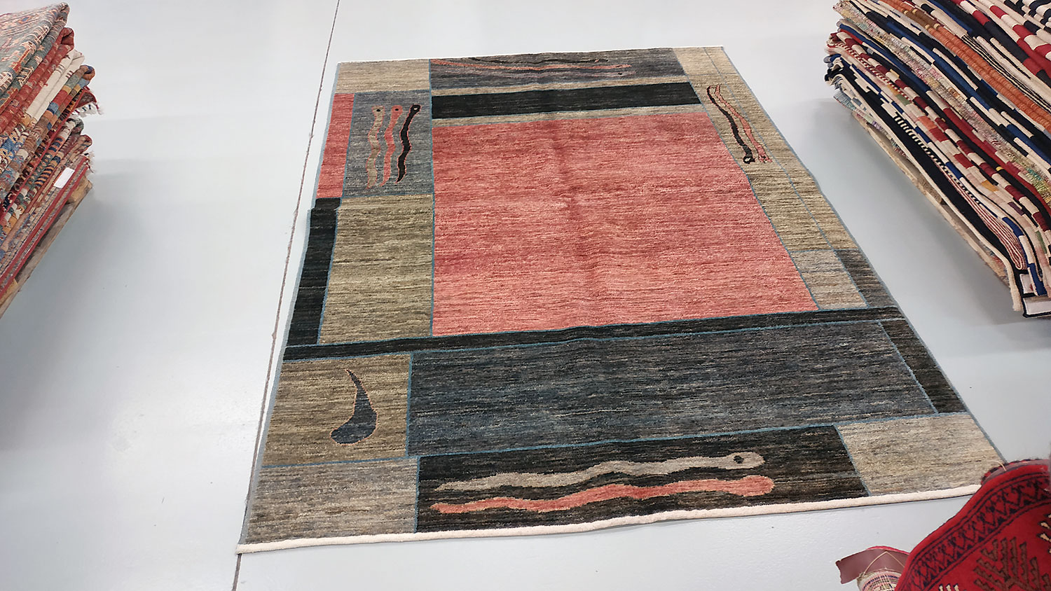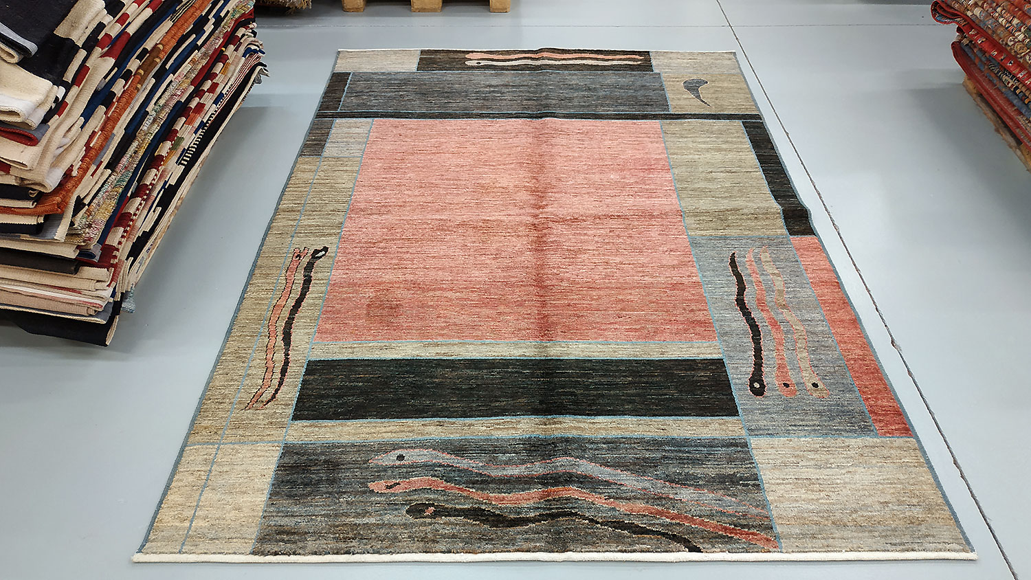 Dimensions : 230 x 170 cm -laine- Pays Afghanistan - Épaisseur : 8 mm - Densité de nouage : 200.000 Nœuds au m² - Surface : 3.91 m² - Poids : 11.73 Kgs - Age : contemporain - Confection : Noué main - Forme : Tapis de chambre - Type : Tapis de decoration