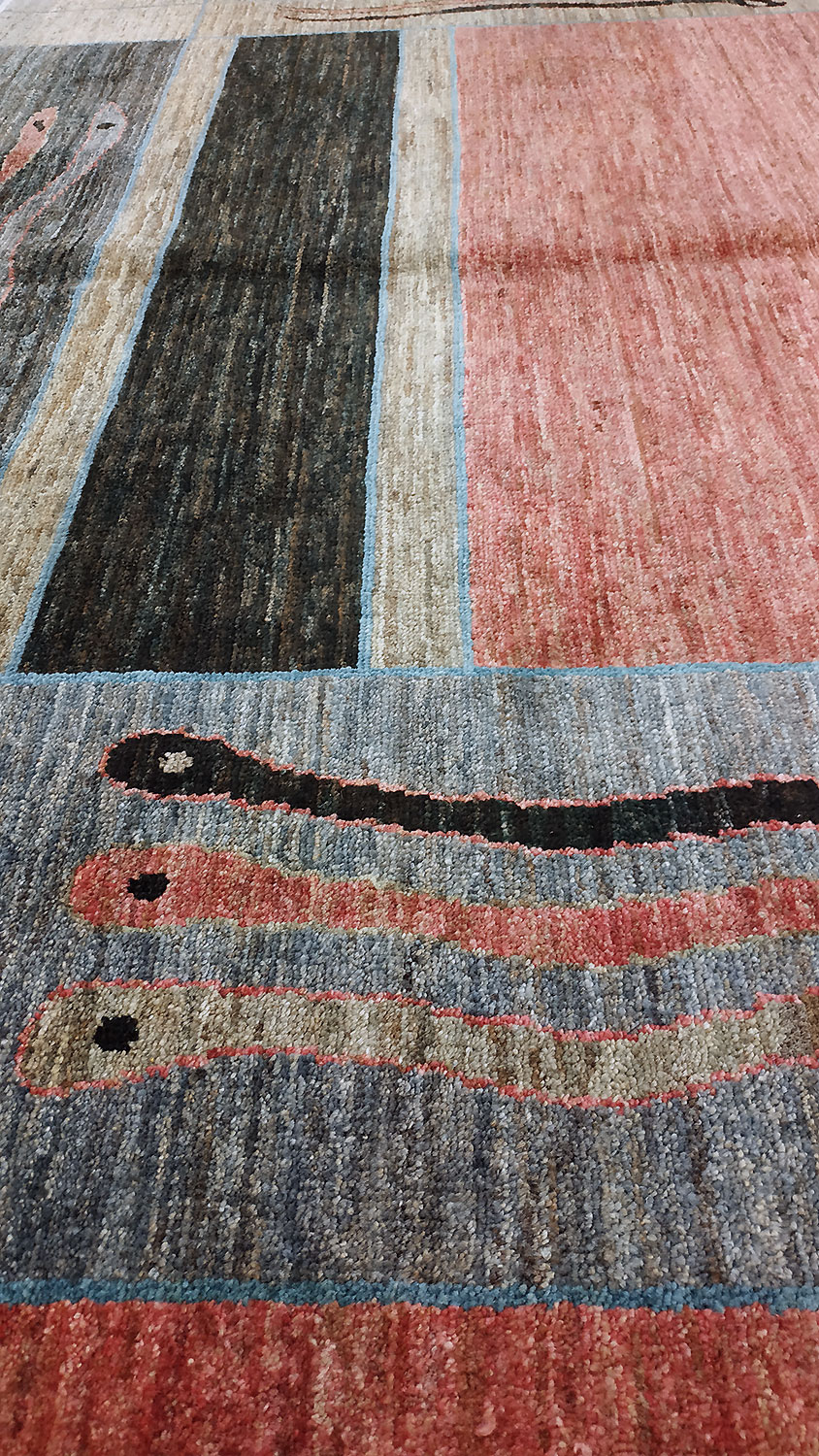 Dimensions : 244 x 160 cm -laine- Pays Afghanistan - Épaisseur : 8 mm - Densité de nouage : 200.000 Nœuds au m² - Surface : 3.9 m² - Poids : 11.71 Kgs - Age : contemporain - Confection : Noué main - Forme : Tapis de chambre - Type : Tapis de decoration