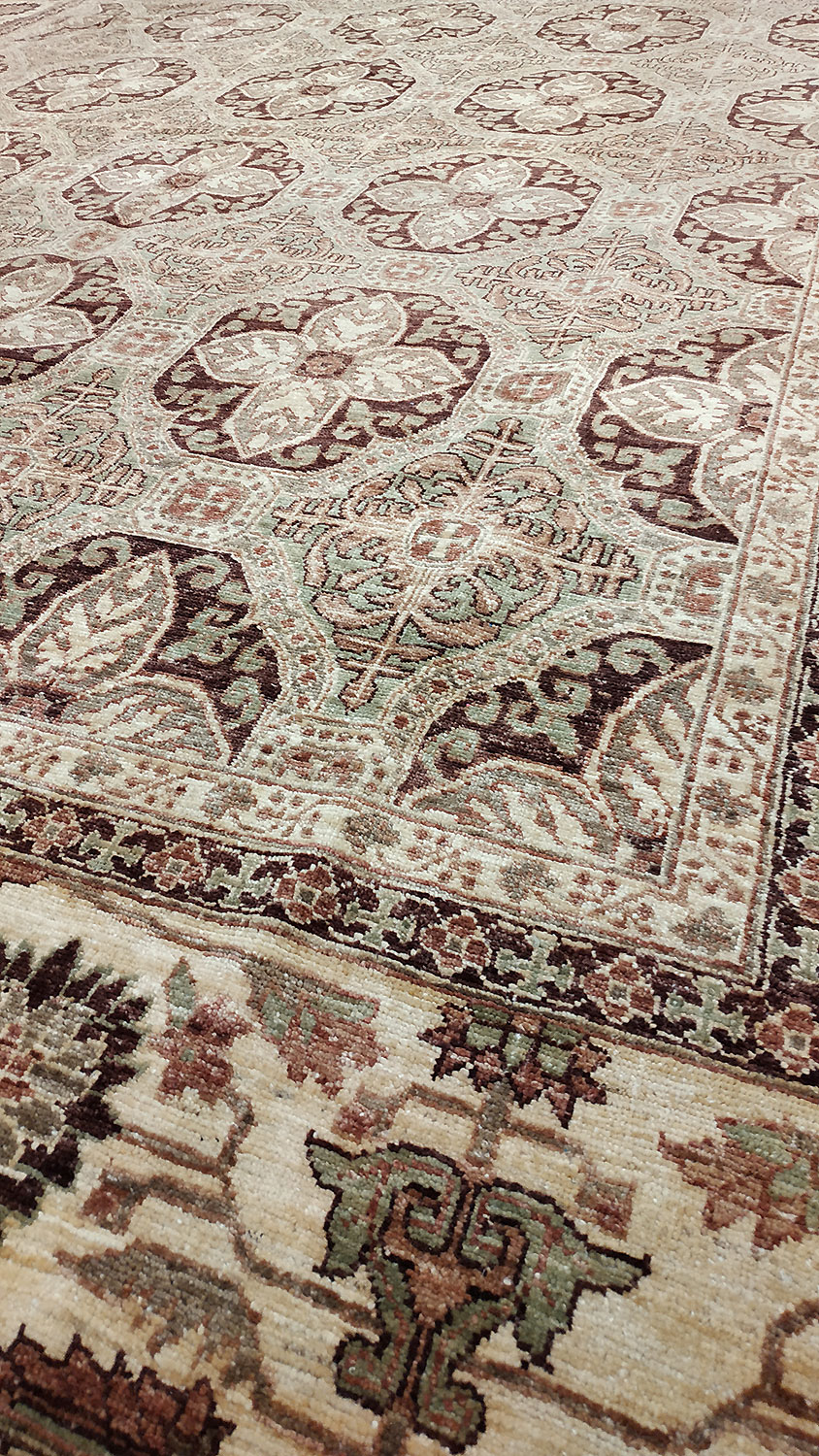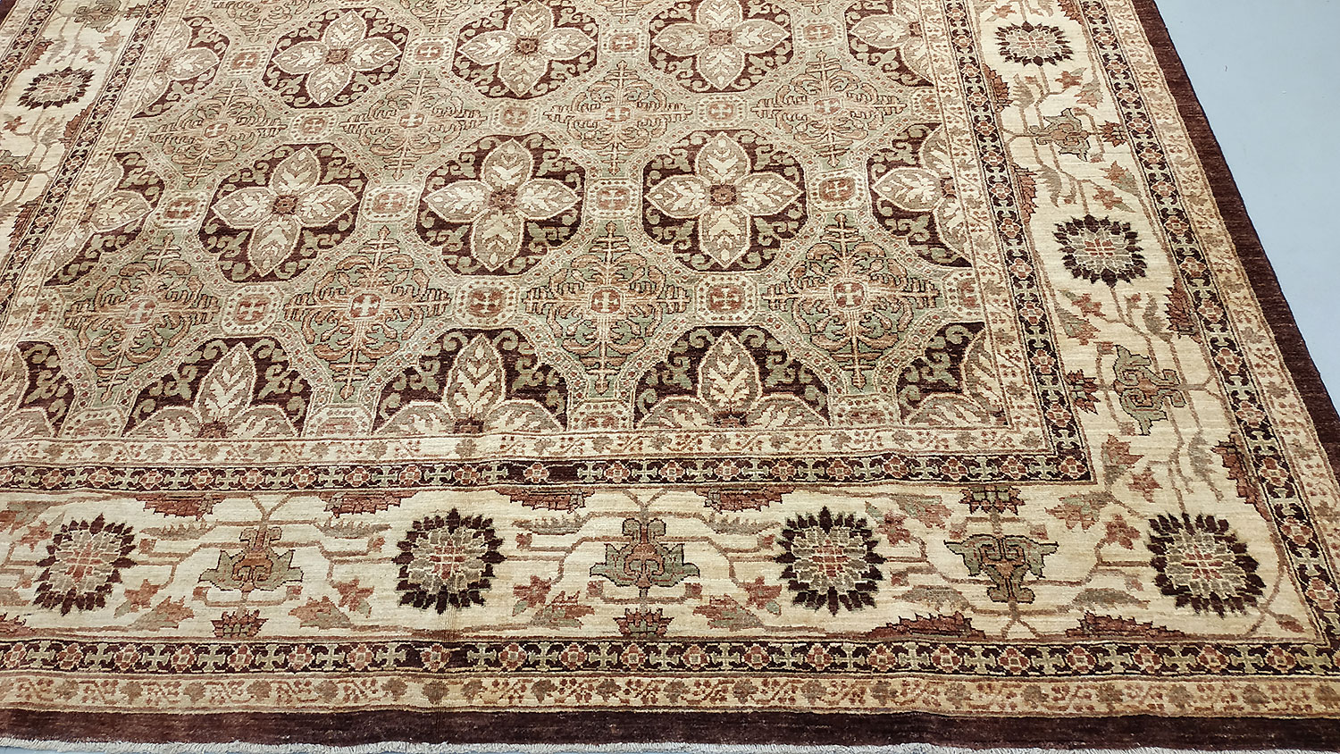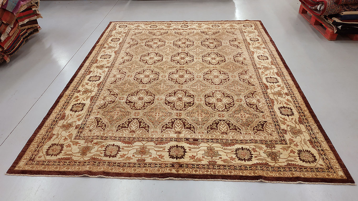 Dimensions : 292 x 250 cm -laine- Pays Afghanistan - Épaisseur : 9 mm - Densité de nouage : 200.000 Nœuds au m² - Surface : 7.3 m² - Poids : 21.9 Kgs - Age : contemporain - Confection : Noué main - Forme : Tapis de salon - Type : Tapis Oriental
