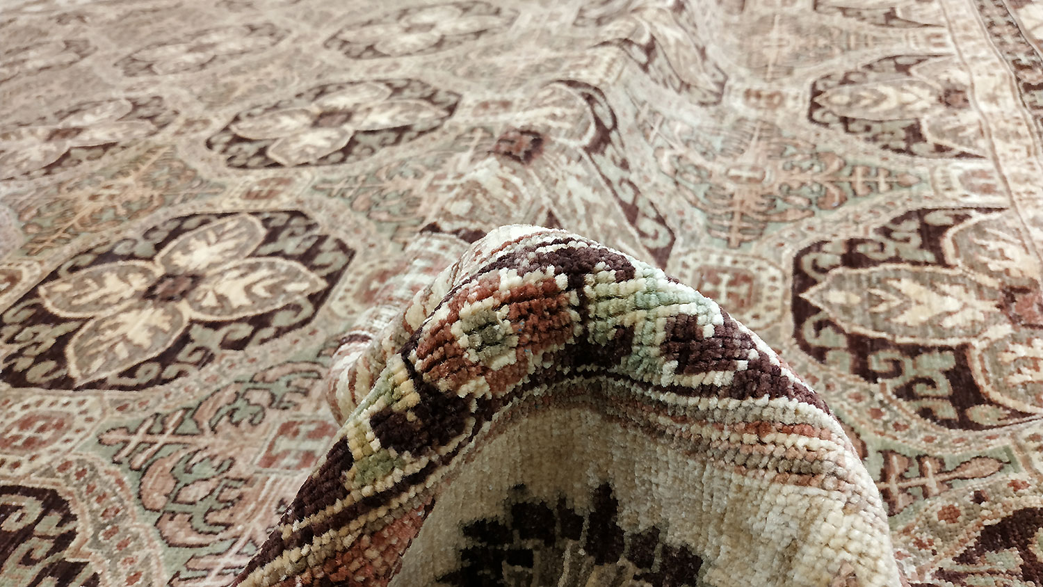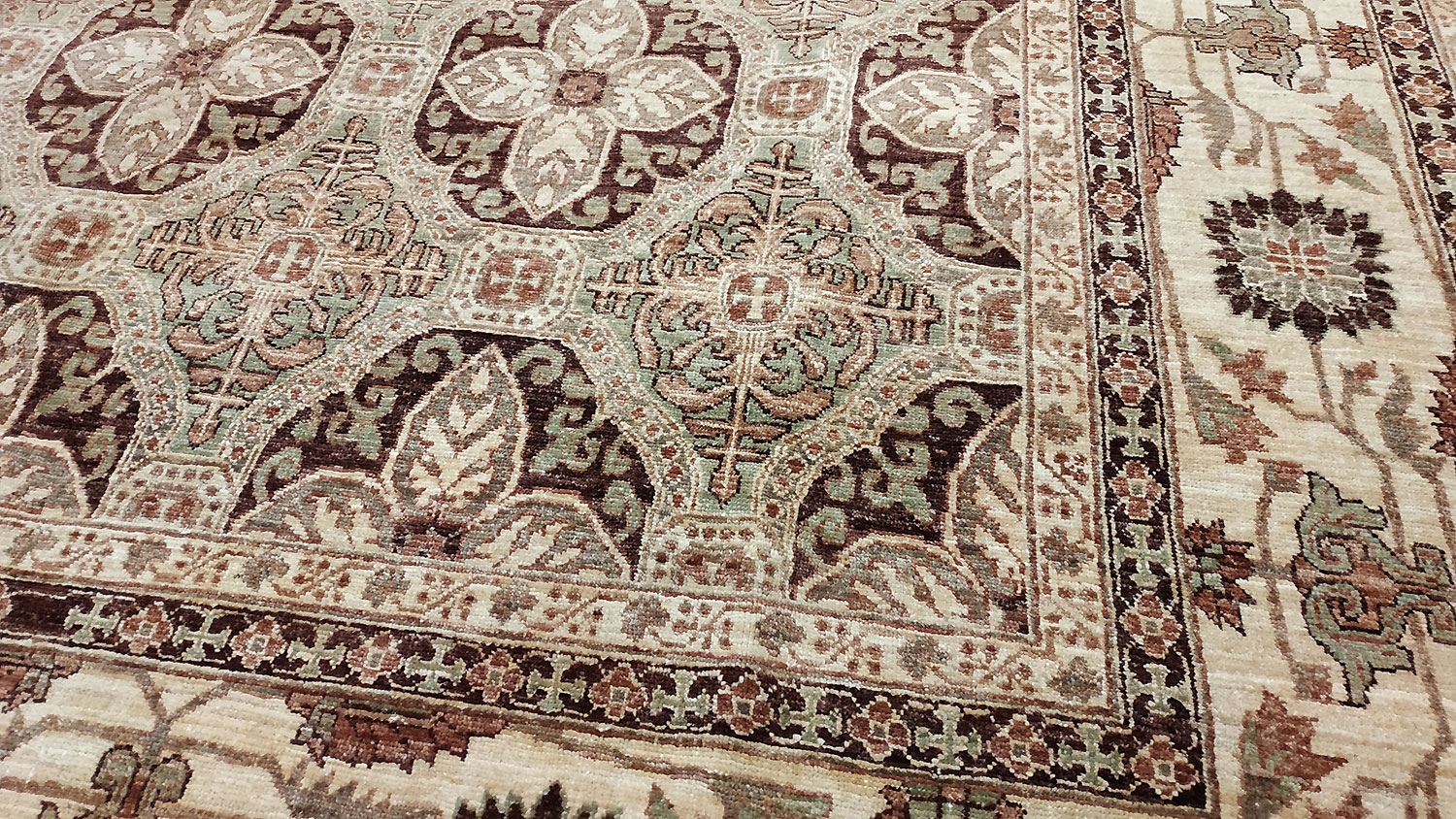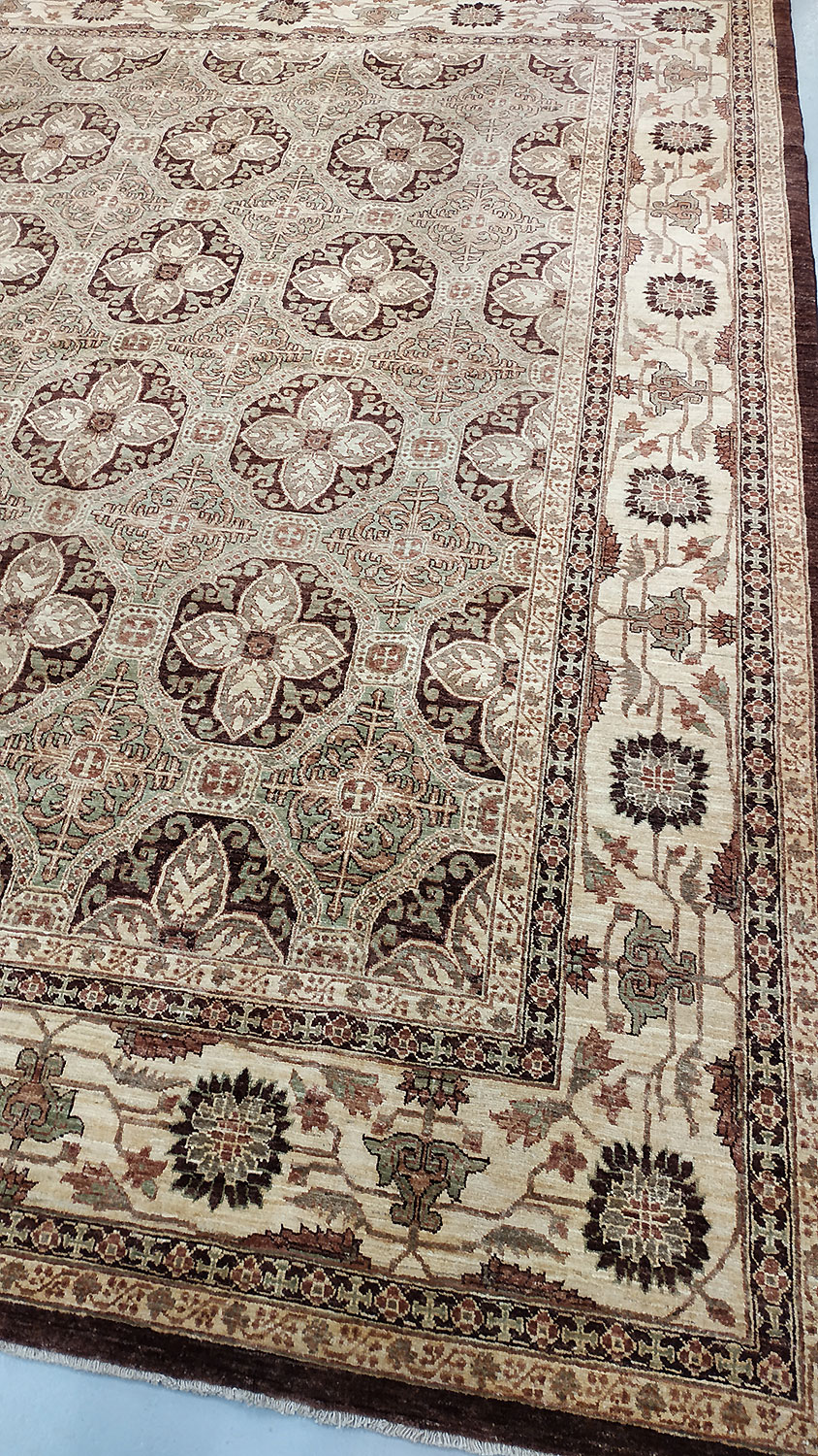 Dimensions : 292 x 250 cm -laine- Pays Afghanistan - Épaisseur : 9 mm - Densité de nouage : 200.000 Nœuds au m² - Surface : 7.3 m² - Poids : 21.9 Kgs - Age : contemporain - Confection : Noué main - Forme : Tapis de salon - Type : Tapis Oriental