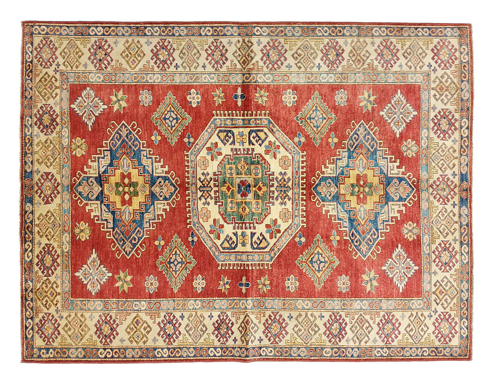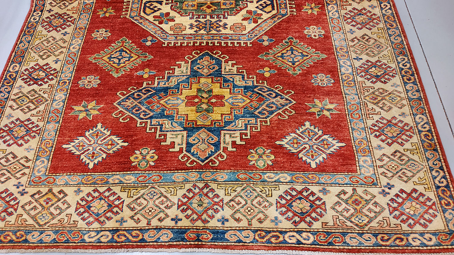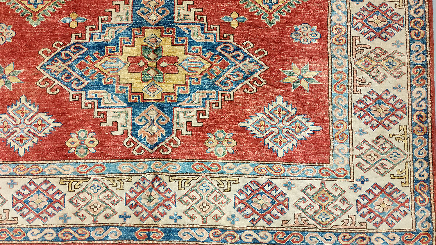 Dimensions : 244 x 177 cm -laine- Pays Afghanistan - Épaisseur : 8 mm - Densité de nouage : 300.000 Nœuds au m² - Surface : 4.32 m² - Poids : 12.96 Kgs - Age : contemporain - Confection : Noué main - Forme : Tapis de chambre - Type : Tapis Oriental