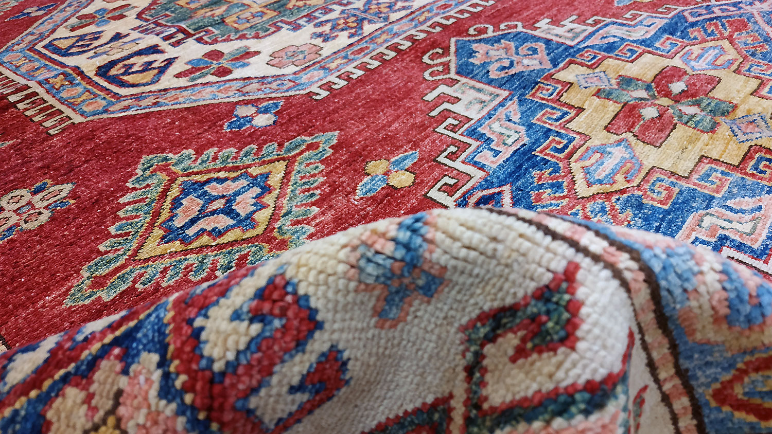 Dimensions : 240 x 169 cm -laine- Pays Afghanistan - Épaisseur : 8 mm - Densité de nouage : 300.000 Nœuds au m² - Surface : 4.06 m² - Poids : 12.17 Kgs - Age : contemporain - Confection : Noué main - Forme : Tapis de chambre - Type : Tapis Oriental