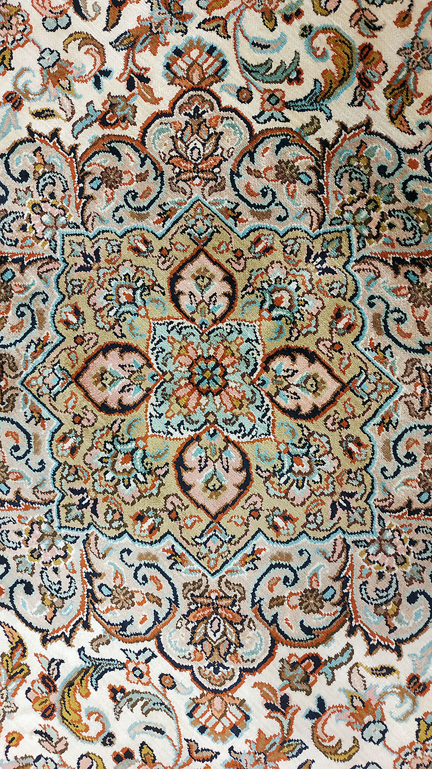 Dimensions : 168 x 166 cm -soie- Pays Inde - Épaisseur : 6 mm - Densité de nouage : 500.000 Nœuds au m² - Surface : 2.79 m² - Poids : 5.58 Kgs - Age : contemporain - Confection : Noué main - Forme : Tapis rond - Type : Tapis Oriental