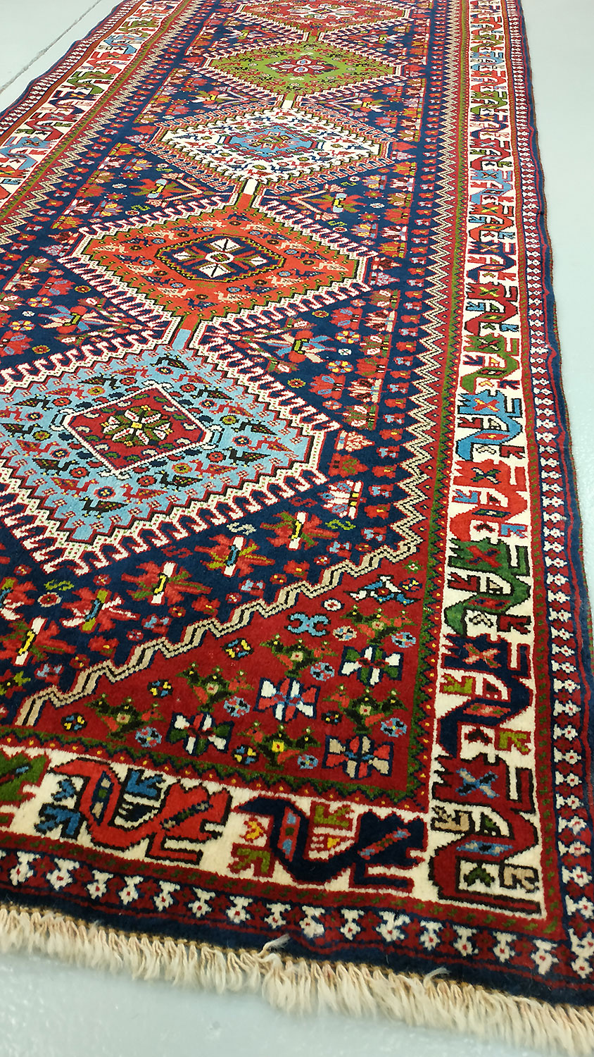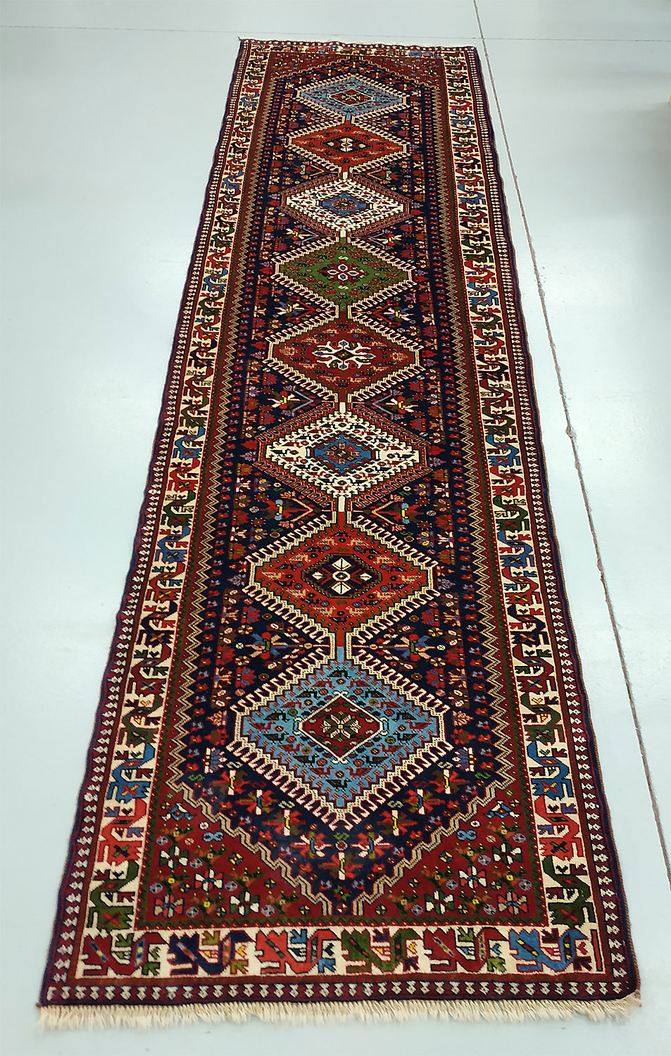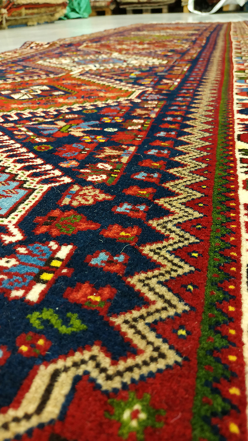 Dimensions : 278 x 98 cm -laine- Pays Iran - Épaisseur : mm - Densité de nouage : Nœuds au m² - Surface : 0 m² - Poids : 0 Kgs - Age : - Confection : - Forme : - Type :