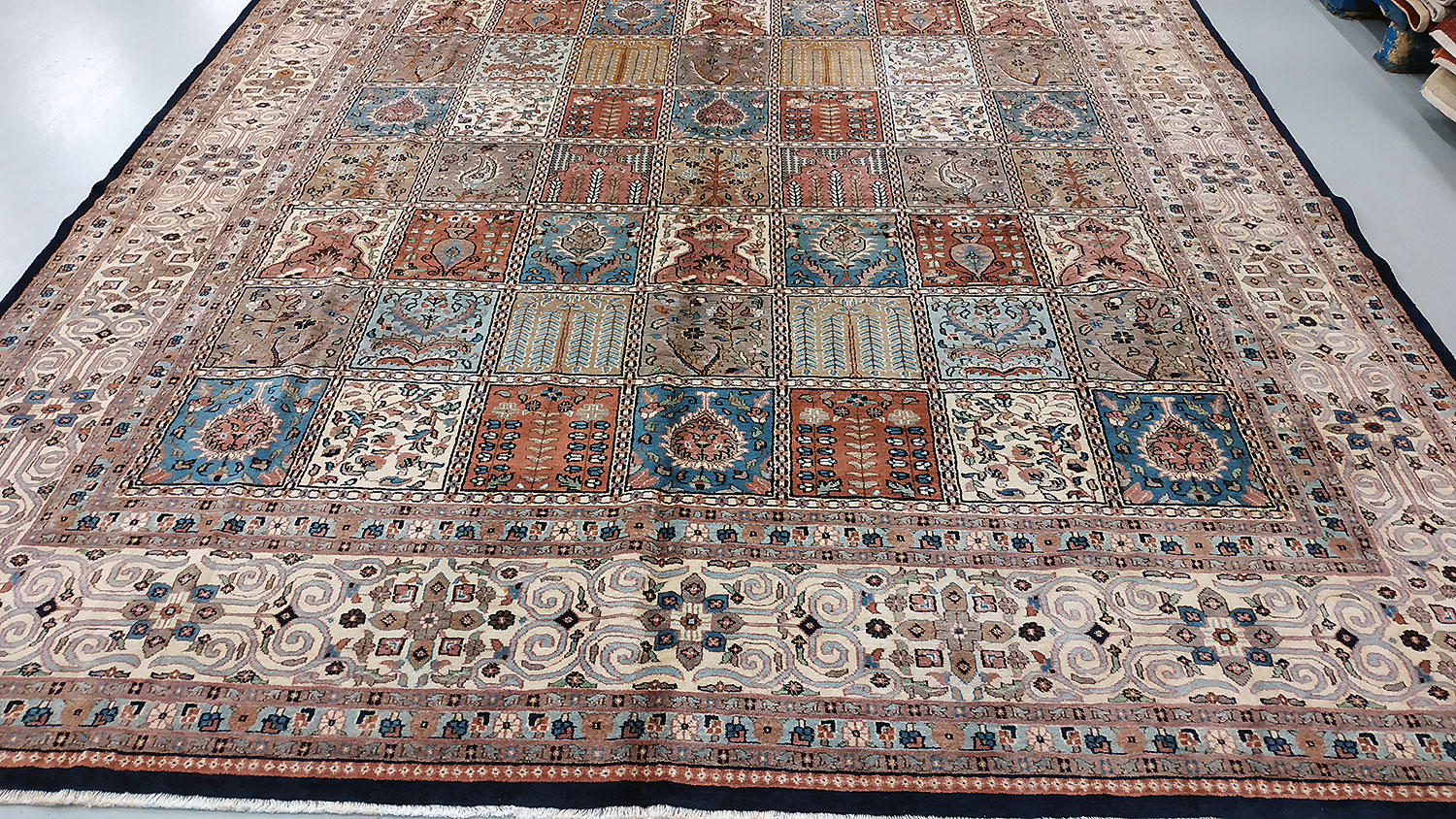 Dimensions : 407 x 318 cm -laine- Pays Pakistan - Épaisseur : 7 mm - Densité de nouage : 250.000 Nœuds au m² - Surface : 12.94 m² - Poids : 25.89 Kgs - Age : contemporain - Confection : Noué main - Forme : Tapis de salon - Type : Tapis Oriental