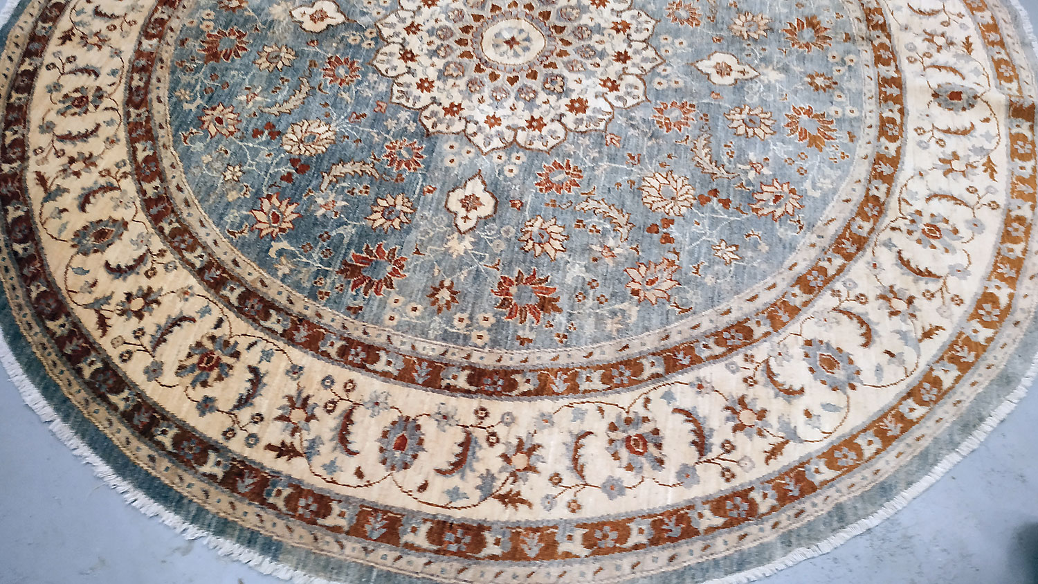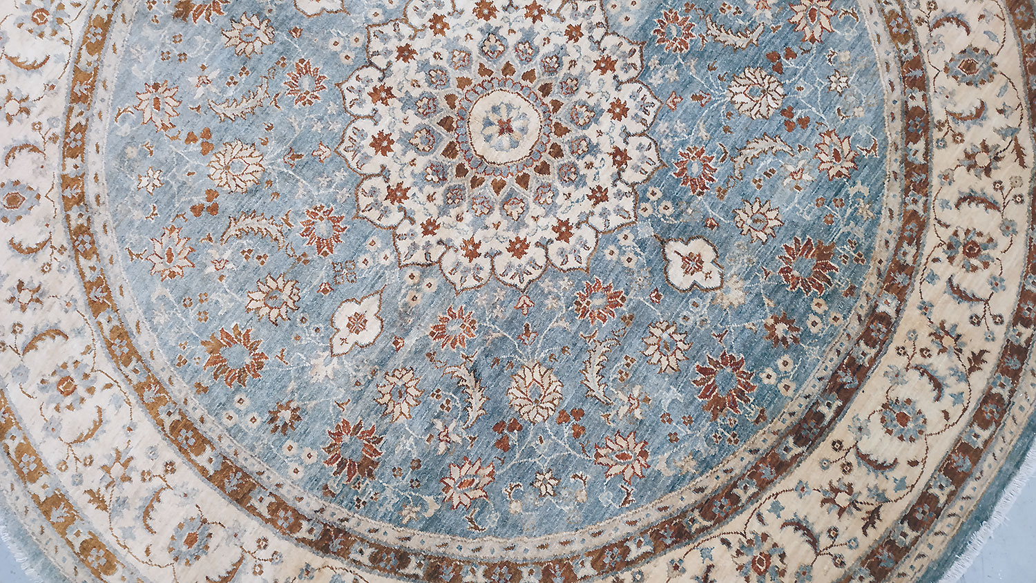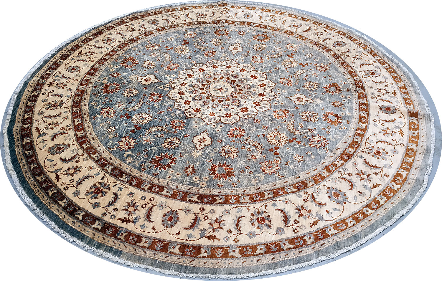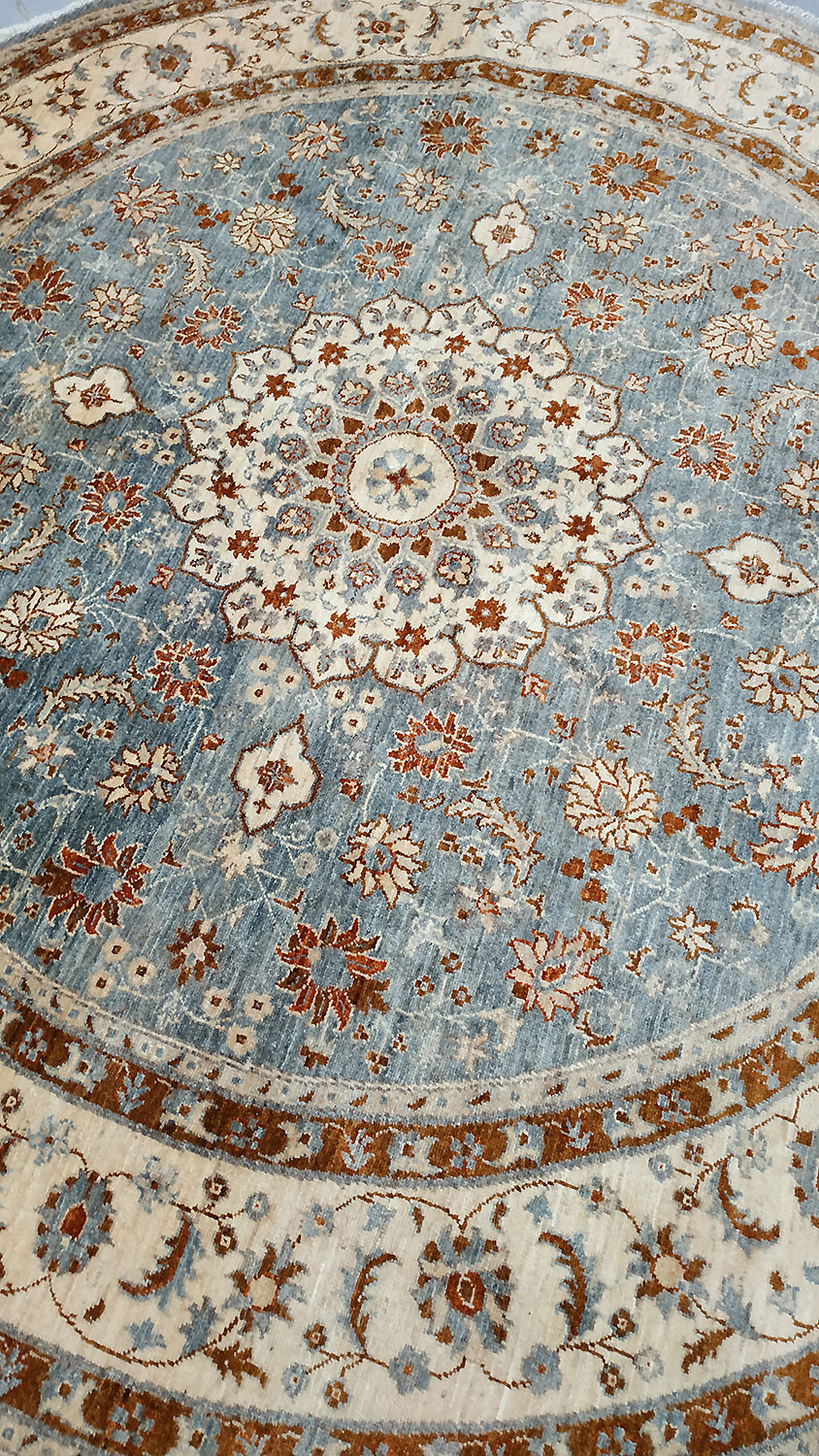 Dimensions : 255 x 255 cm -laine- Pays Afghanistan - Épaisseur : 9 mm - Densité de nouage : 200.000 Nœuds au m² - Surface : 6.5 m² - Poids : 19.51 Kgs - Age : contemporain - Confection : Noué main - Forme : Tapis rond - Type : Tapis Oriental