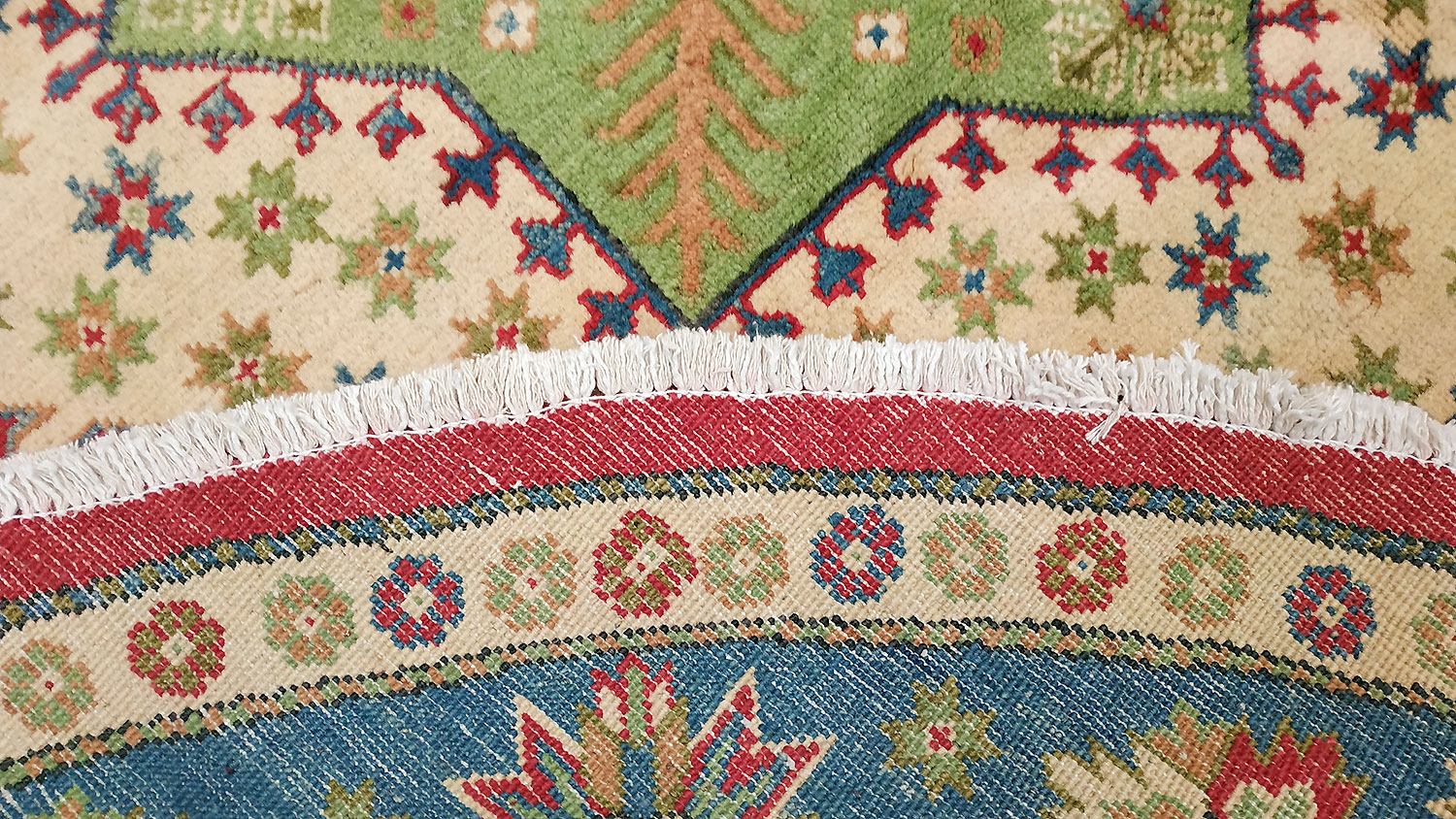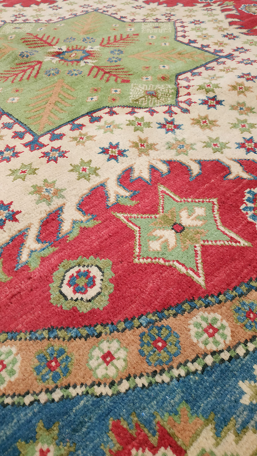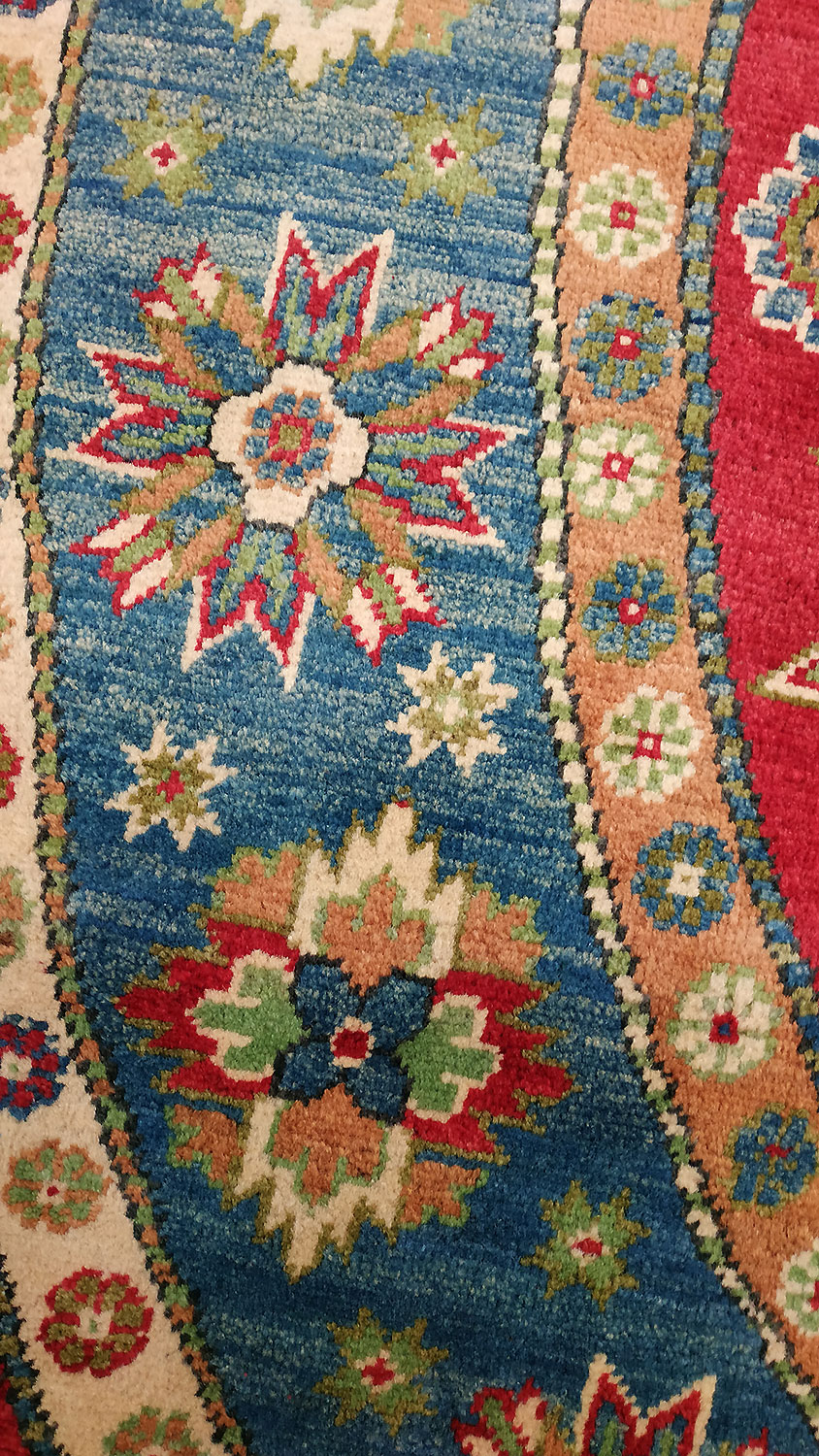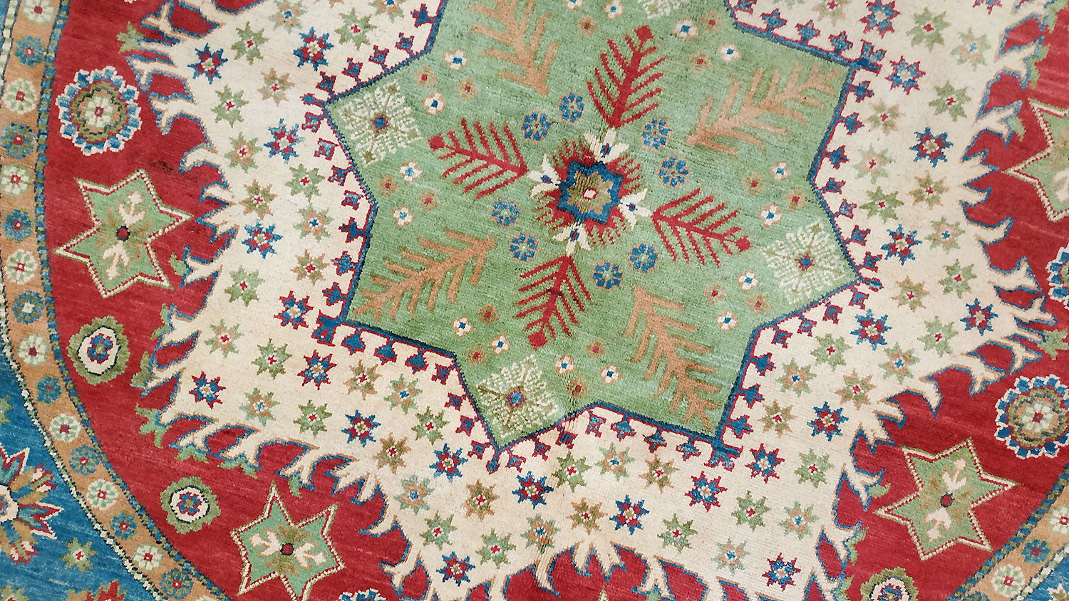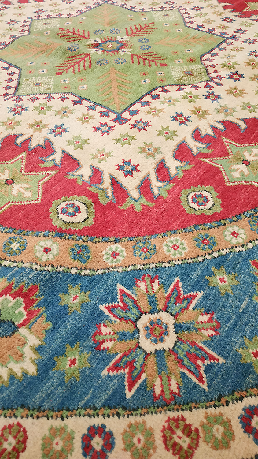 Dimensions : 197 x 195 cm -laine- Pays Afghanistan - Épaisseur : 8 mm - Densité de nouage : 300.000 Nœuds au m² - Surface : 3.84 m² - Poids : 11.52 Kgs - Age : contemporain - Confection : Noué main - Forme : Tapis rond - Type : Tapis Oriental