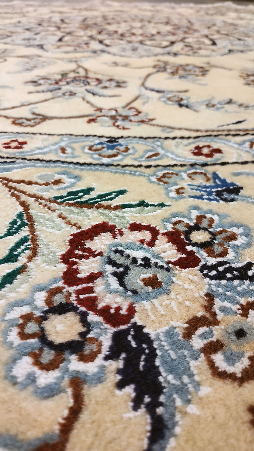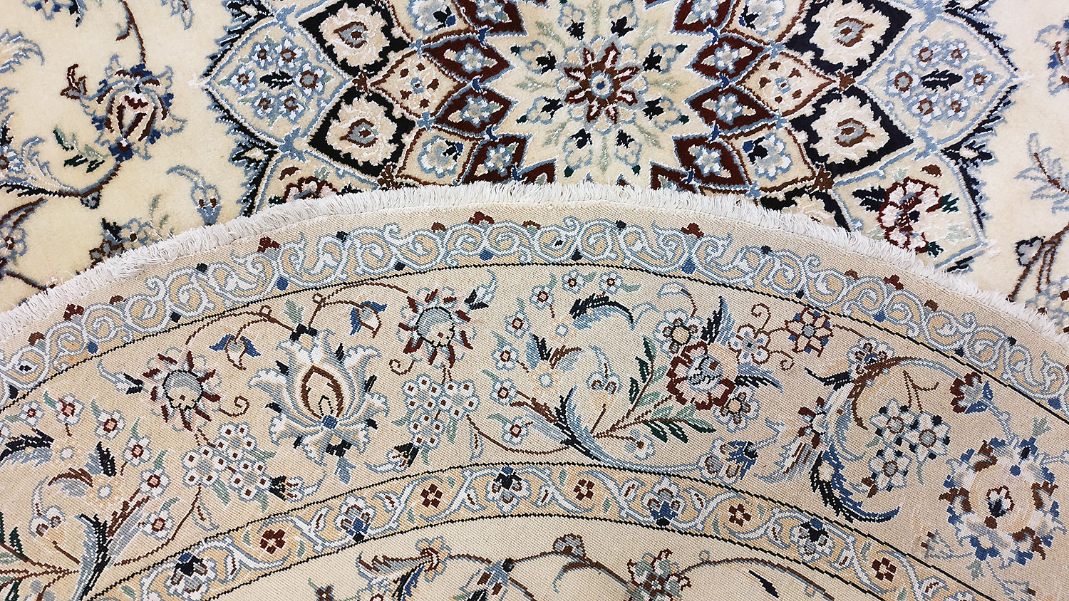 Dimensions : 200 x 200 cm -laine et soie- Pays Iran - Épaisseur : mm - Densité de nouage : Nœuds au m² - Surface : 0 m² - Poids : 0 Kgs - Age : - Confection : - Forme : - Type :