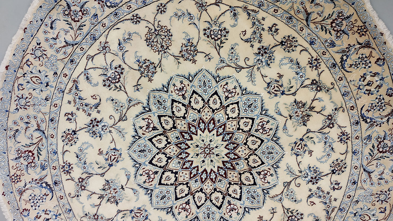 Dimensions : 180 x 180 cm -laine et soie- Pays Pakistan - Épaisseur : mm - Densité de nouage : Nœuds au m² - Surface : 0 m² - Poids : 0 Kgs - Age : - Confection : - Forme : - Type :