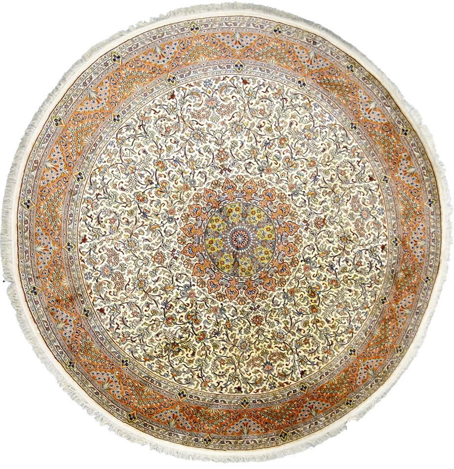 Dimensions : 176 x 176 cm -laine et soie- Pays Pakistan - Épaisseur : mm - Densité de nouage : Nœuds au m² - Surface : 0 m² - Poids : 0 Kgs - Age : - Confection : - Forme : - Type :