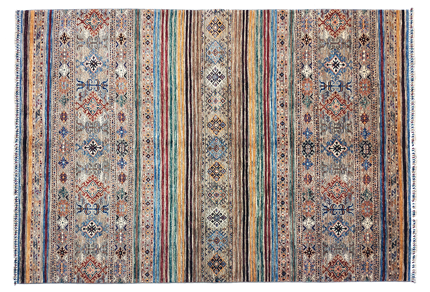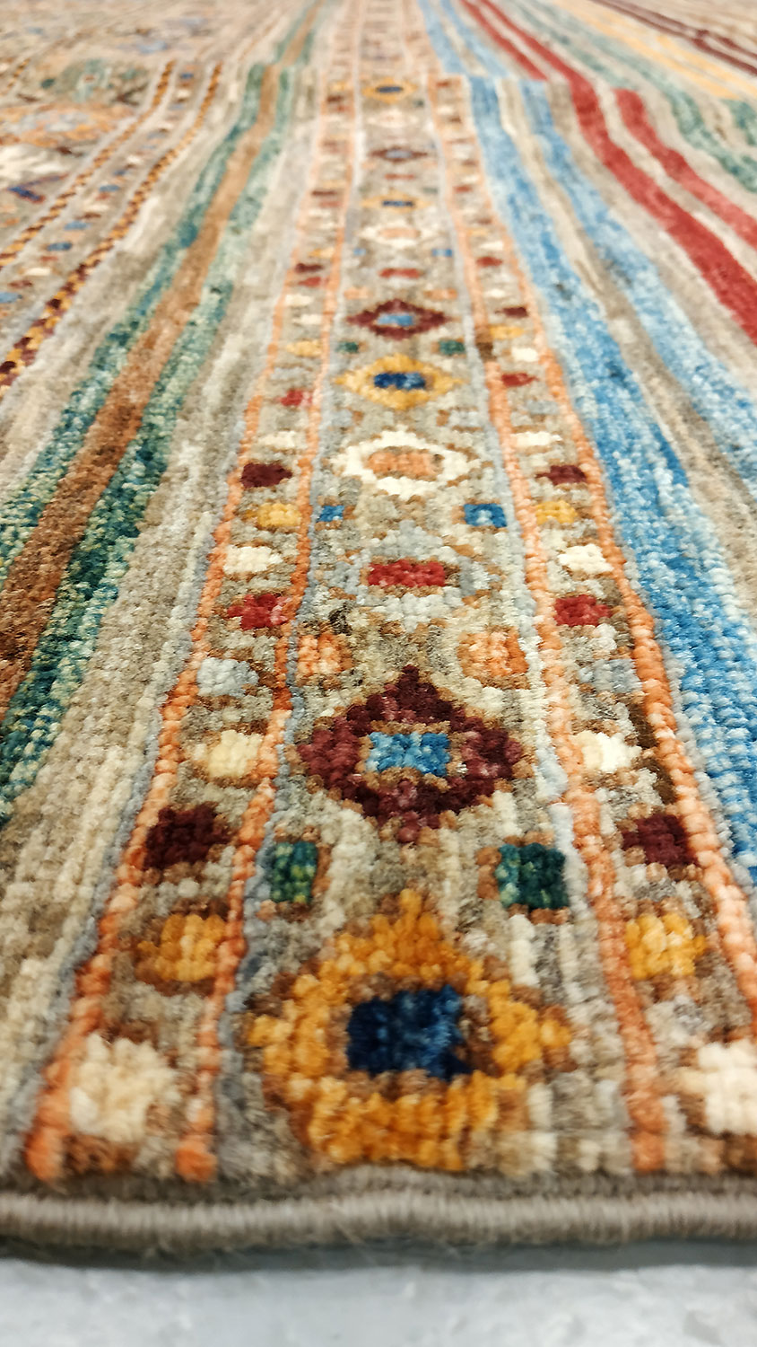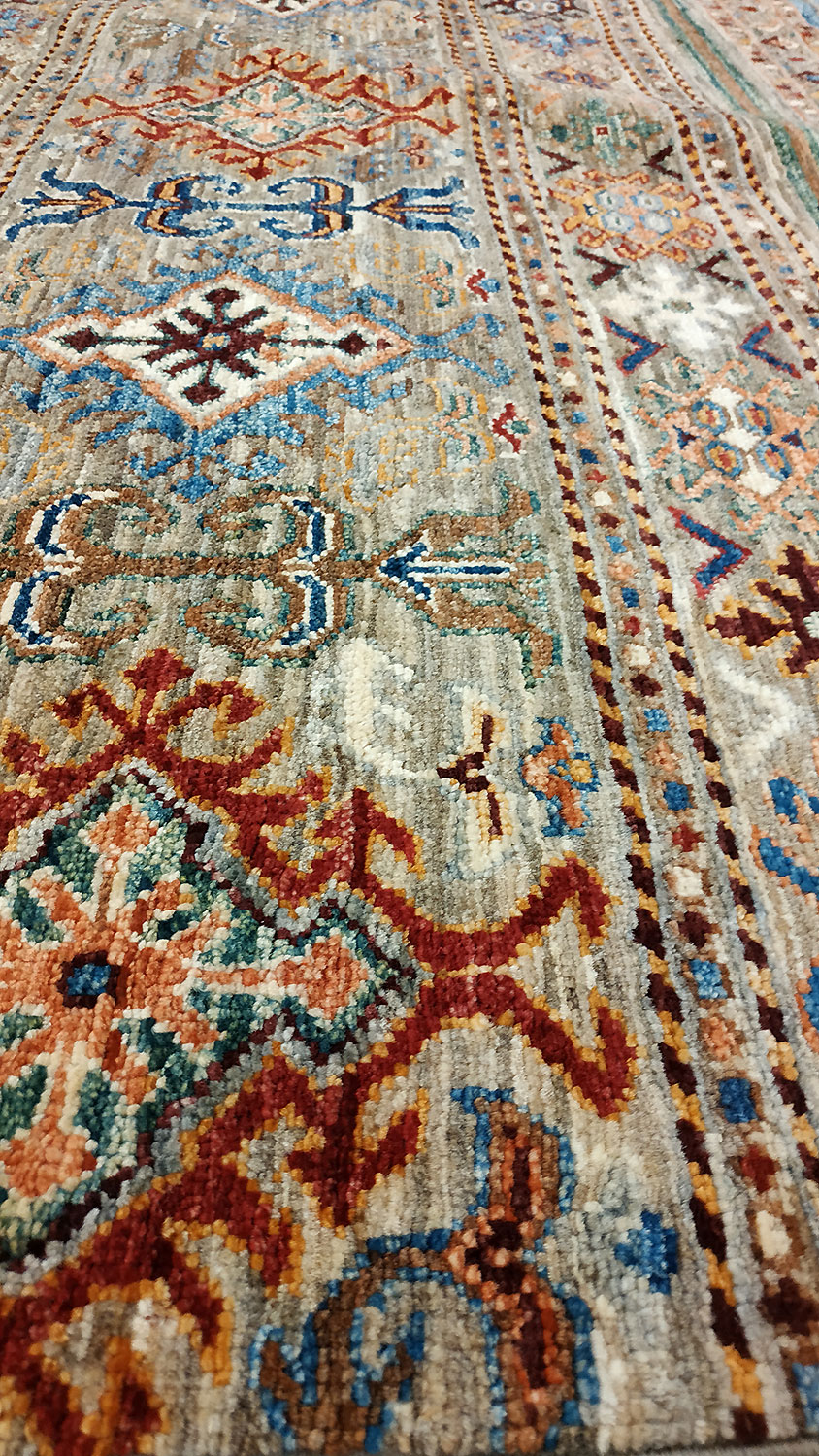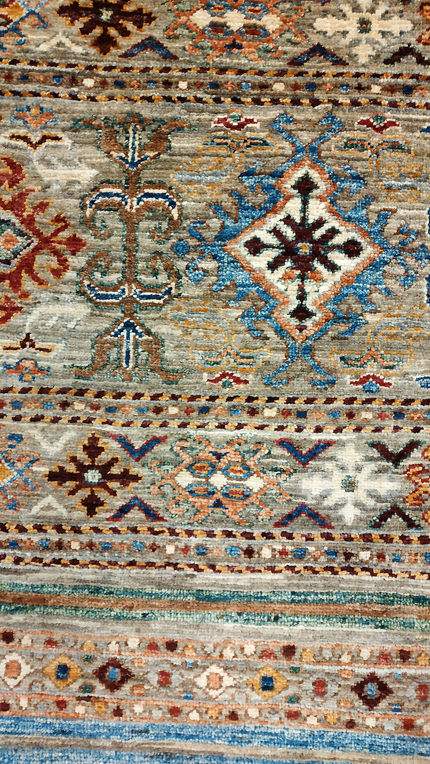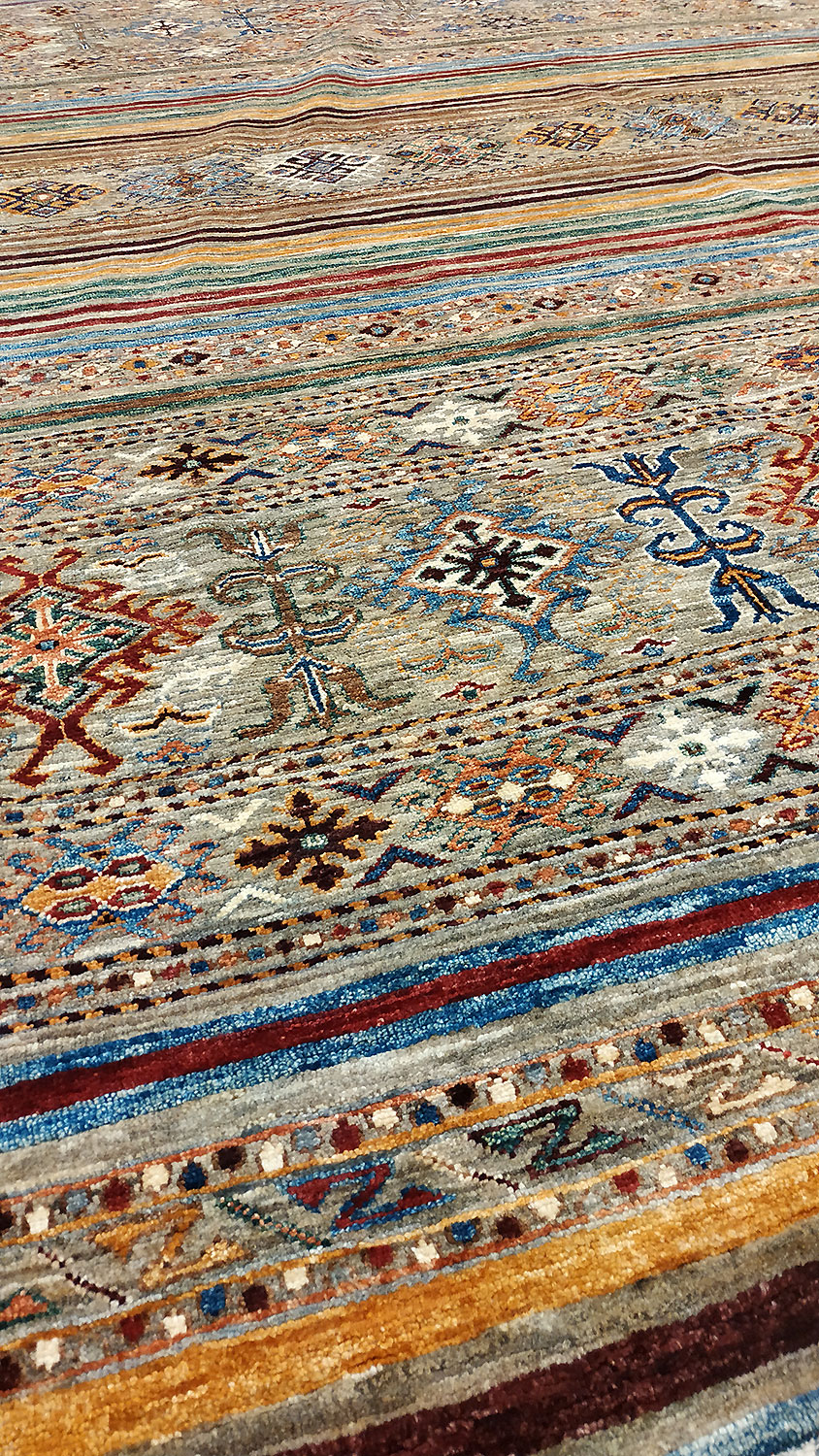 Dimensions : 289 x 203 cm -laine- Pays Afghanistan - Épaisseur : 8 mm - Densité de nouage : 300.000 Nœuds au m² - Surface : 5.87 m² - Poids : 17.6 Kgs - Age : contemporain - Confection : Noué main - Forme : Tapis de salon - Type : Tapis de decoration