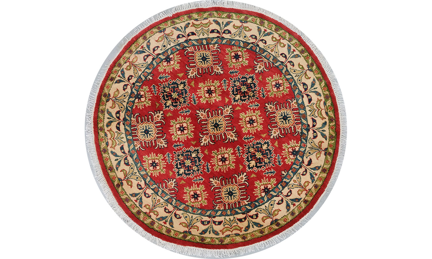 Dimensions : 158 x 158 cm -laine et soie- Pays Pakistan - Épaisseur : mm - Densité de nouage : Nœuds au m² - Surface : 0 m² - Poids : 0 Kgs - Age : - Confection : - Forme : - Type :