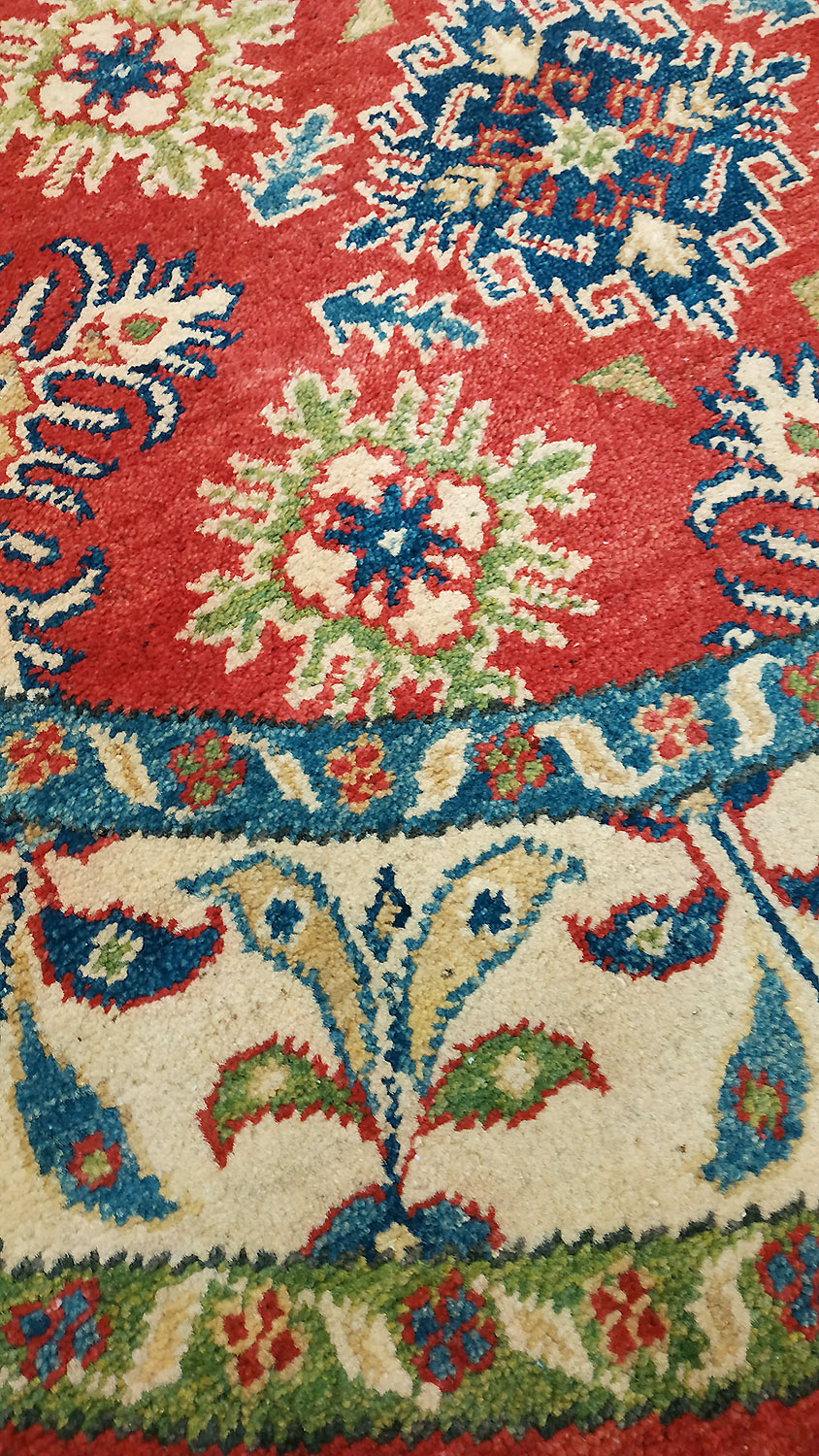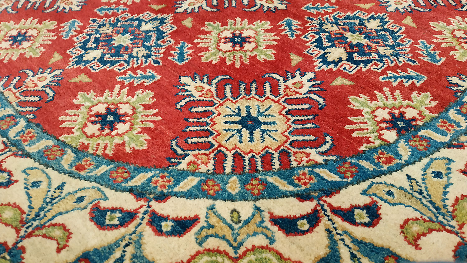 Dimensions : 165 x 165 cm -laine- Pays Afghanistan - Épaisseur : mm - Densité de nouage : Nœuds au m² - Surface : 0 m² - Poids : 0 Kgs - Age : - Confection : - Forme : - Type :