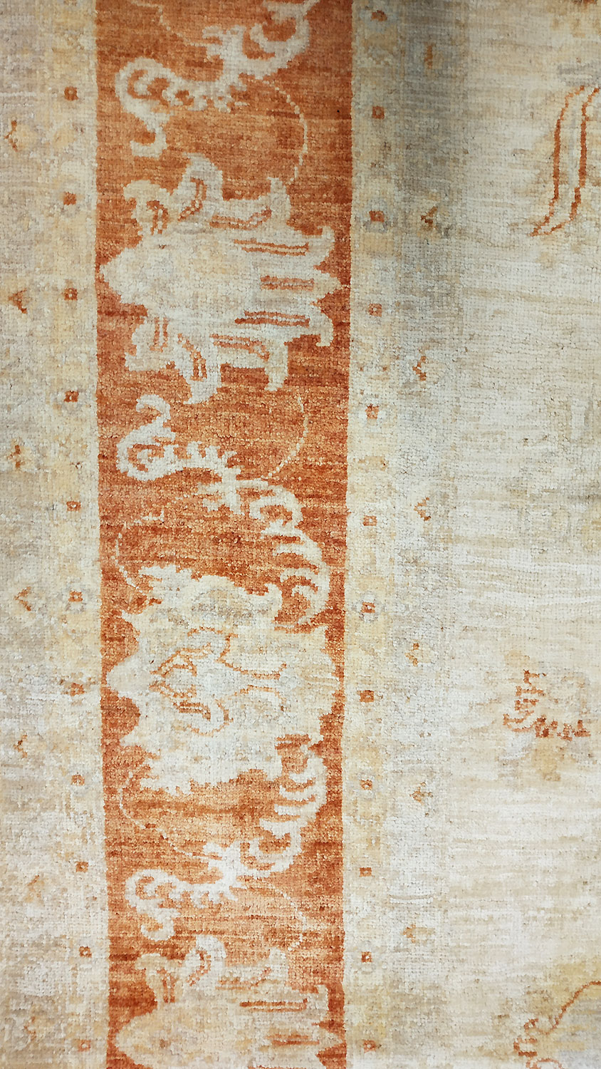 Dimensions : 287 x 198 cm -laine- Pays Afghanistan - Épaisseur : 9 mm - Densité de nouage : 200.000 Nœuds au m² - Surface : 5.68 m² - Poids : 17.05 Kgs - Age : contemporain - Confection : Noué main - Forme : Tapis de salon - Type : Tapis Oriental