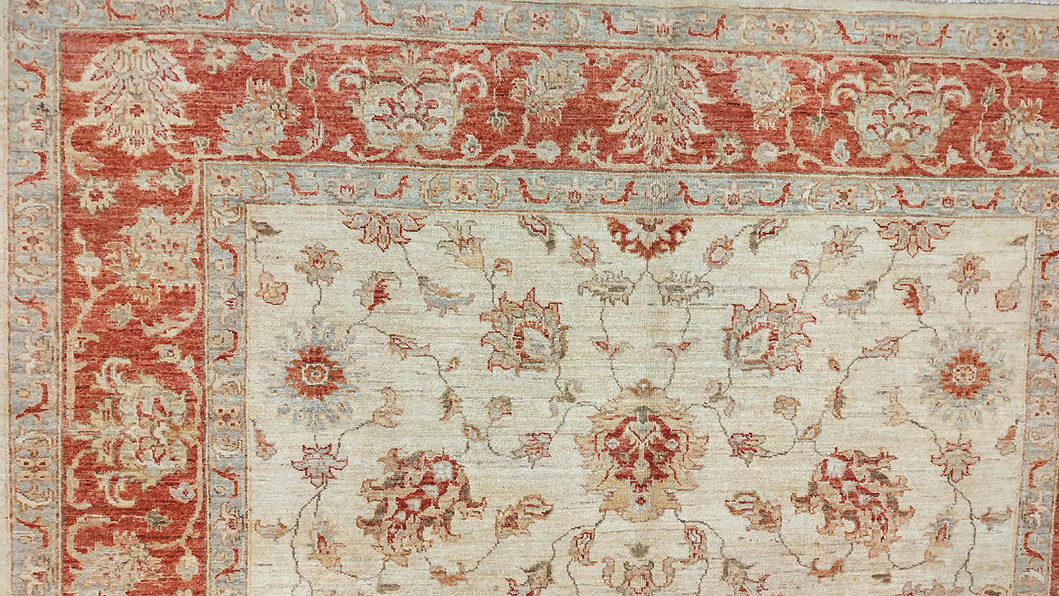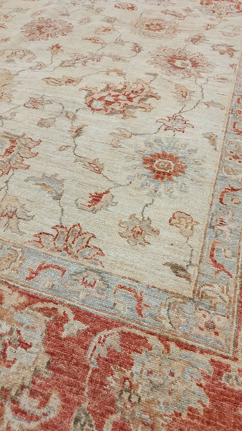Dimensions : 292 x 209 cm -laine- Pays Afghanistan - Épaisseur : 9 mm - Densité de nouage : 200.000 Nœuds au m² - Surface : 6.1 m² - Poids : 18.31 Kgs - Age : contemporain - Confection : Noué main - Forme : Tapis de salon - Type : Tapis Oriental