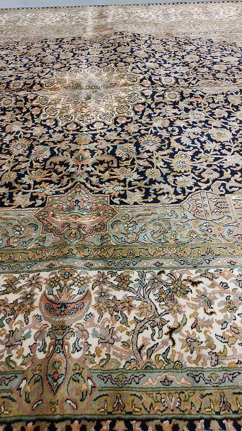 Dimensions : 280 x 182 cm -soie- Pays Inde - Épaisseur : 6 mm - Densité de nouage : 500.000 Nœuds au m² - Surface : 5.1 m² - Poids : 10.19 Kgs - Age : contemporain - Confection : Noué main - Forme : Tapis de salon - Type : Tapis Oriental