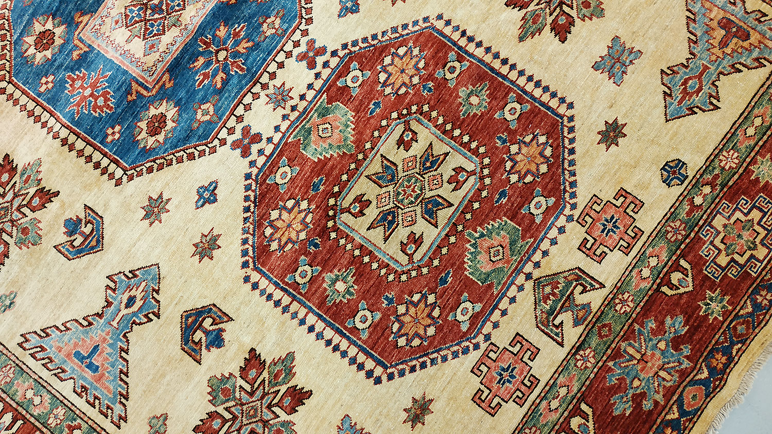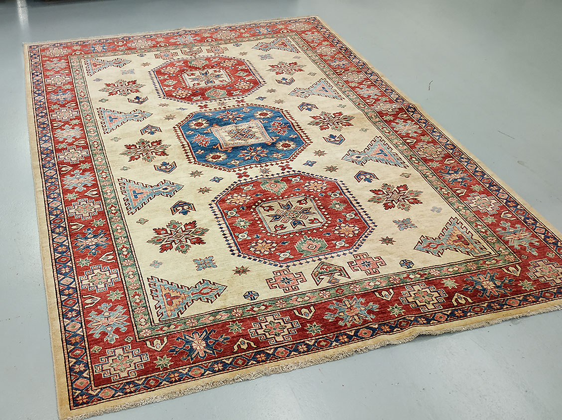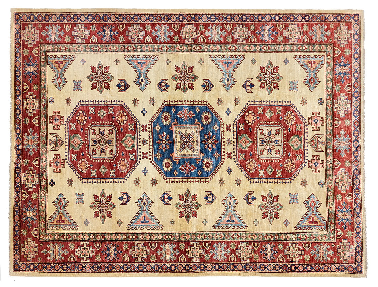 Dimensions : 242 x 182 cm -laine- Pays Afghanistan - Épaisseur : 8 mm - Densité de nouage : 300.000 Nœuds au m² - Surface : 4.4 m² - Poids : 13.21 Kgs - Age : contemporain - Confection : Noué main - Forme : Tapis de chambre - Type : Tapis Oriental