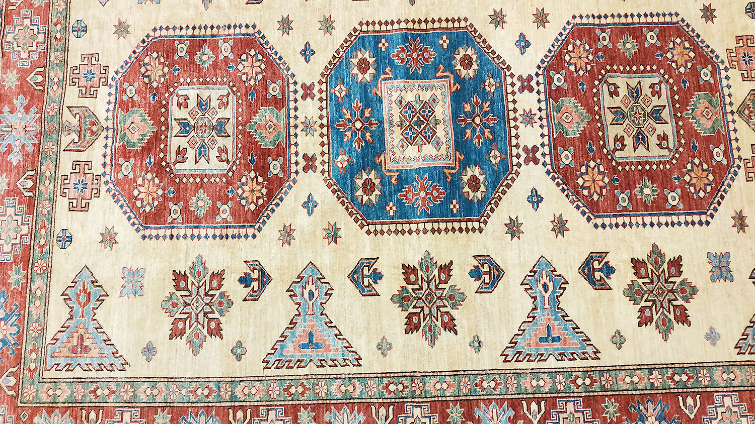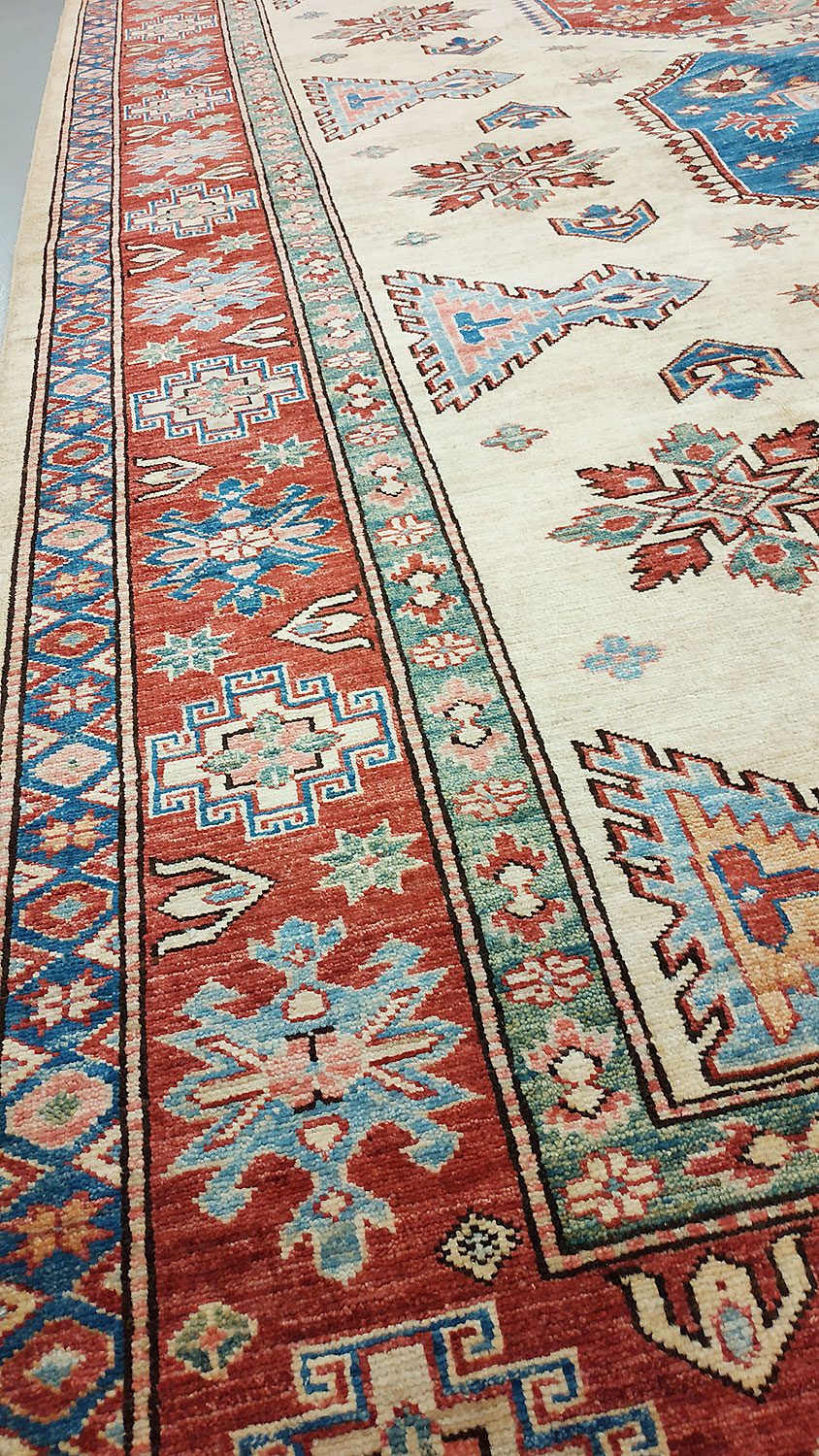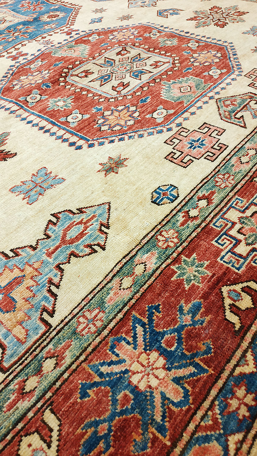 Dimensions : 258 x 199 cm -laine- Pays Afghanistan - Épaisseur : 8 mm - Densité de nouage : 300.000 Nœuds au m² - Surface : 5.13 m² - Poids : 15.4 Kgs - Age : contemporain - Confection : Noué main - Forme : Tapis de salon - Type : Tapis Oriental
