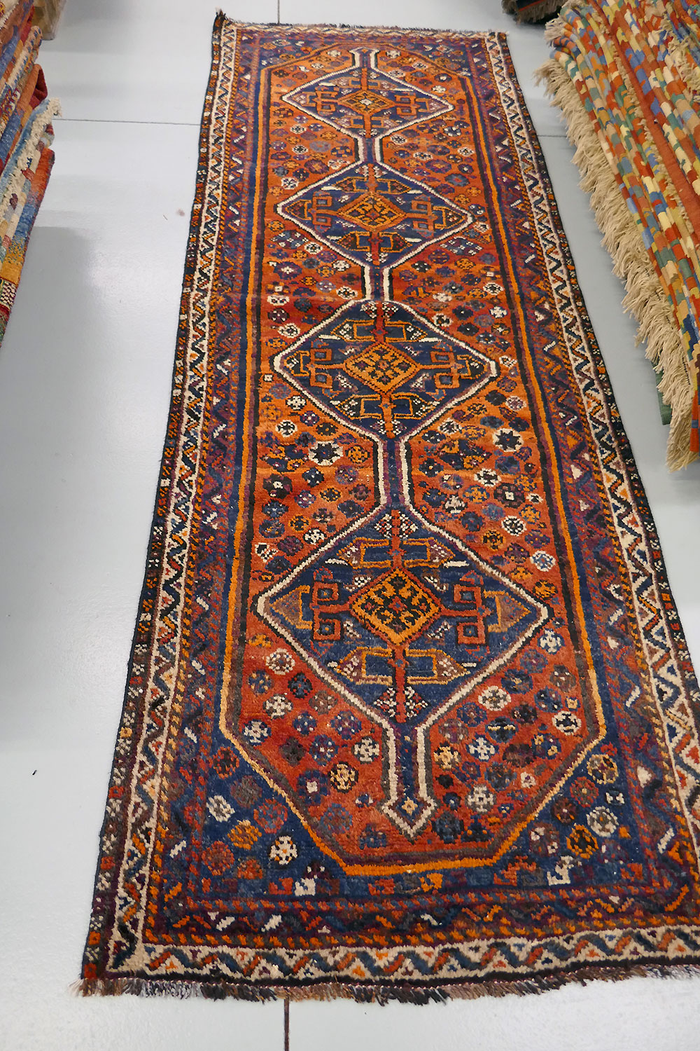 Dimensions : 305 x 82 cm -laine- Pays Iran - Épaisseur : mm - Densité de nouage : Nœuds au m² - Surface : 0 m² - Poids : 0 Kgs - Age : - Confection : - Forme : - Type :